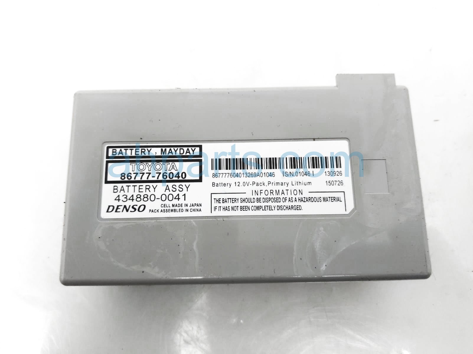 2014 Lexus ES 350 mayday battery backup is a used item with a 1 year warranty. This OEM replacement mayday battery backup is genuine and has part numbers 86777-76040, and 8677776040. This Lexus part sells for $95.