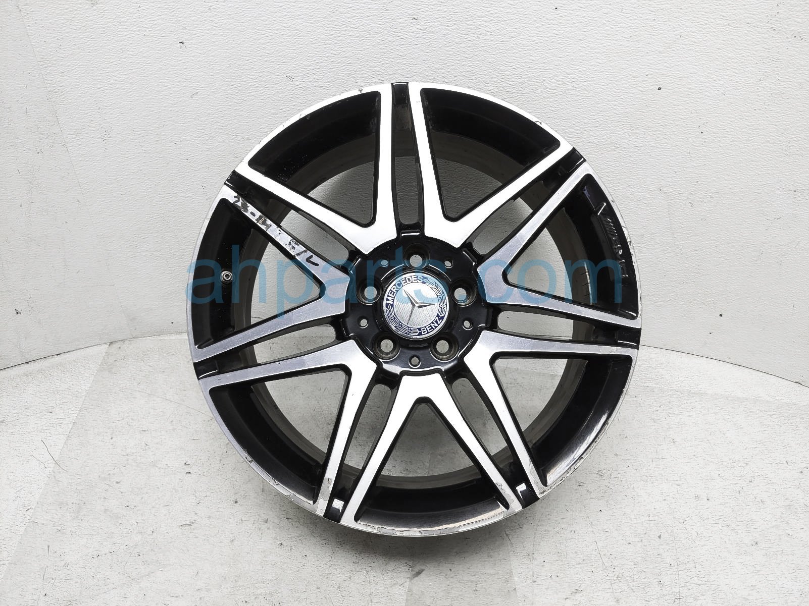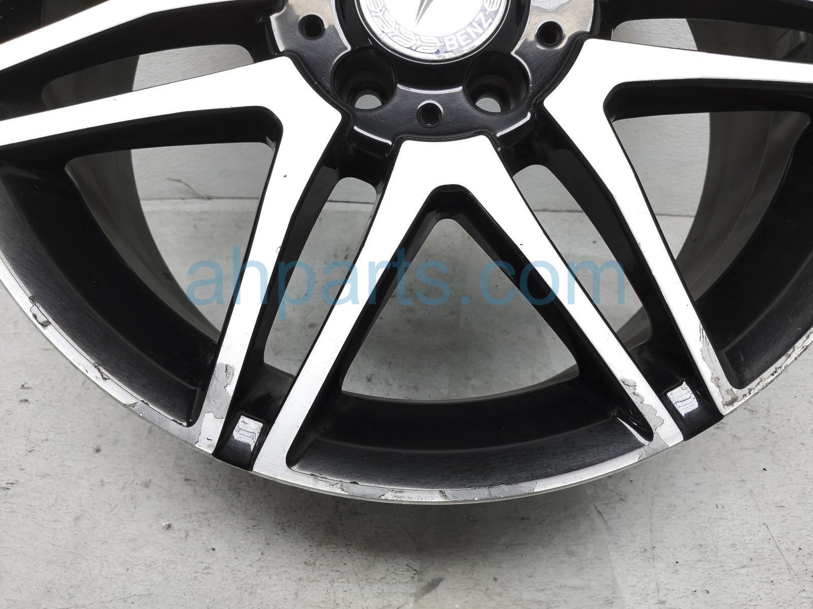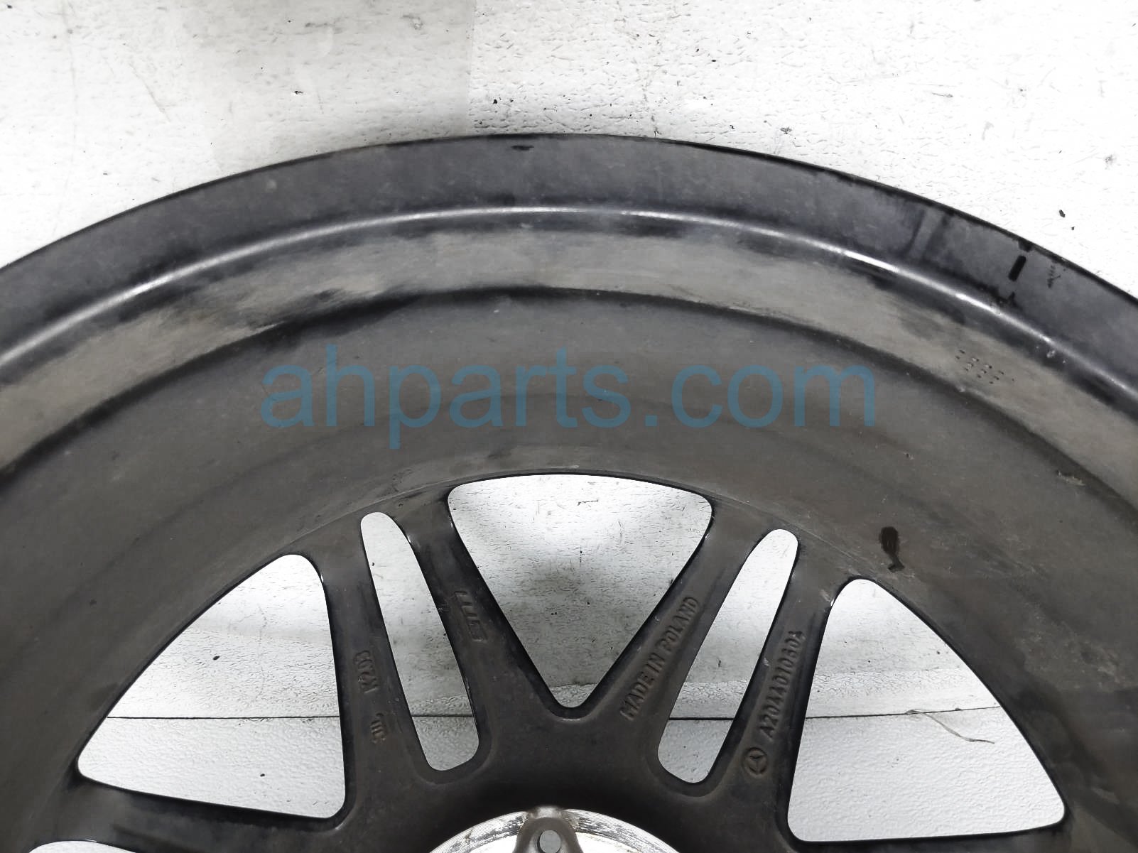 2014 Mercedes C250 front driver wheel / rim - some curb is a used item with a 1 year warranty. This OEM replacement front driver wheel / rim - some curb is genuine and has part numbers 2044010604. This Mercedes part sells for $590.