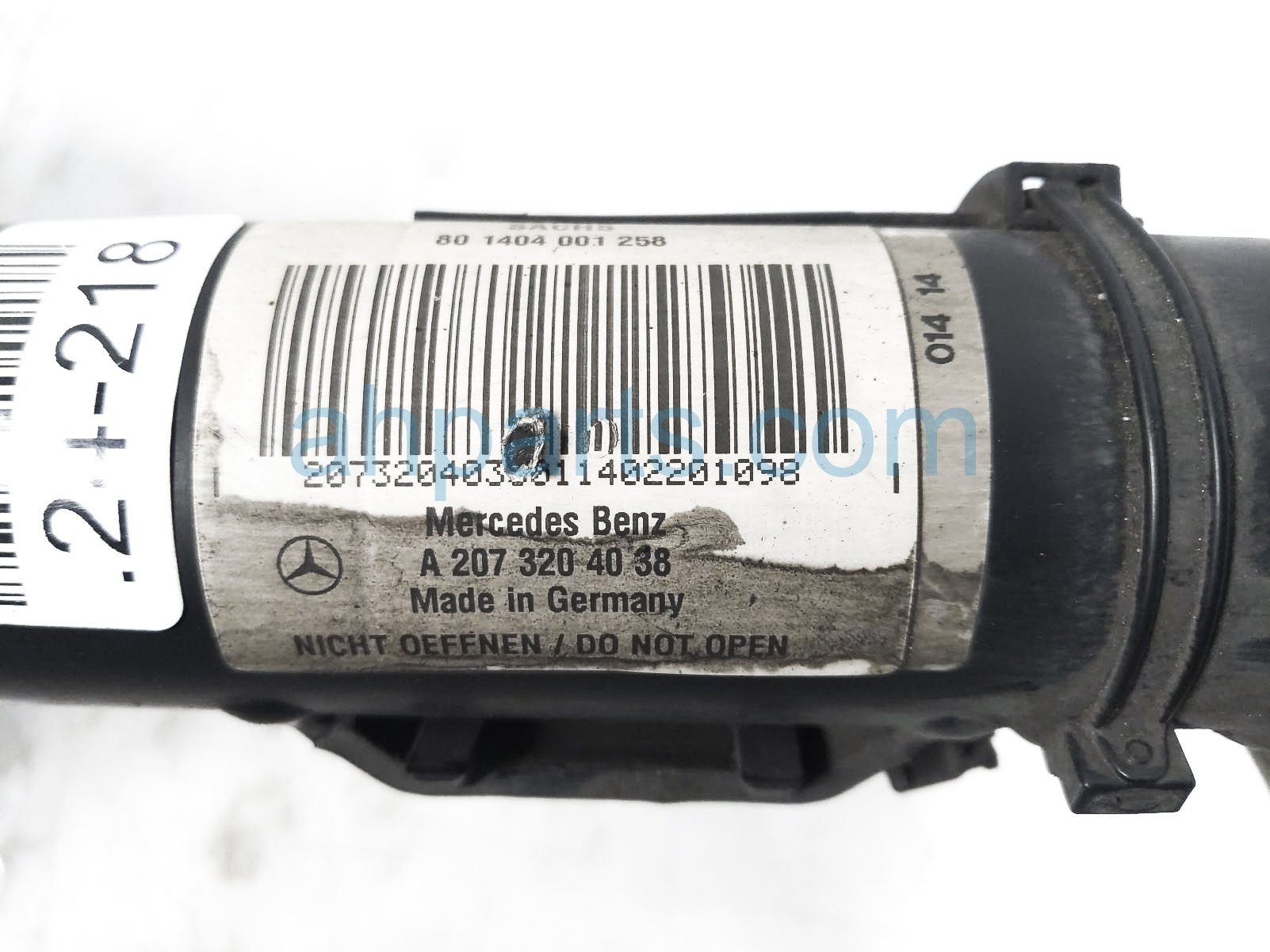 2014 Mercedes E350 front driver strut + spring is a used item with a 1 year warranty. This OEM replacement front driver strut + spring is genuine and has part numbers 207-323-23-00-64, 207323230064, 204-321-11-04, 2043211104, 204-320-12-73, and 2043201273. This Mercedes part sells for $59.