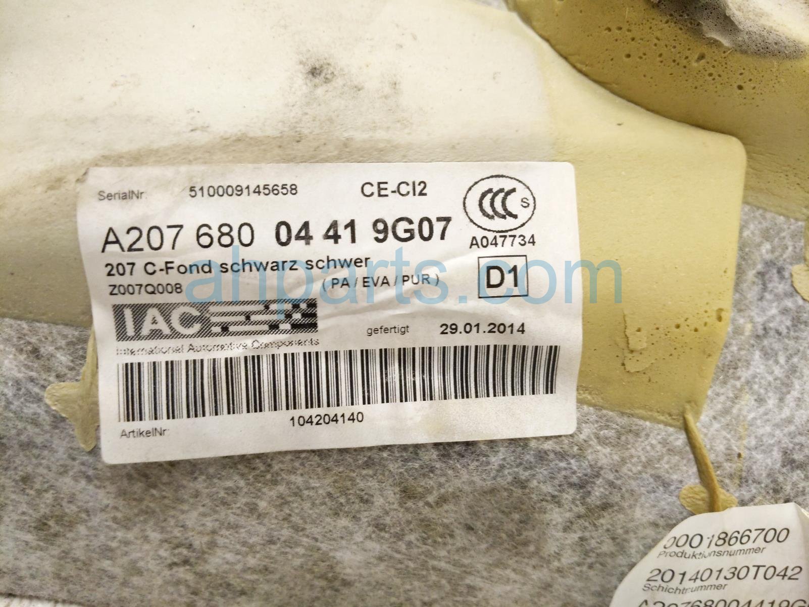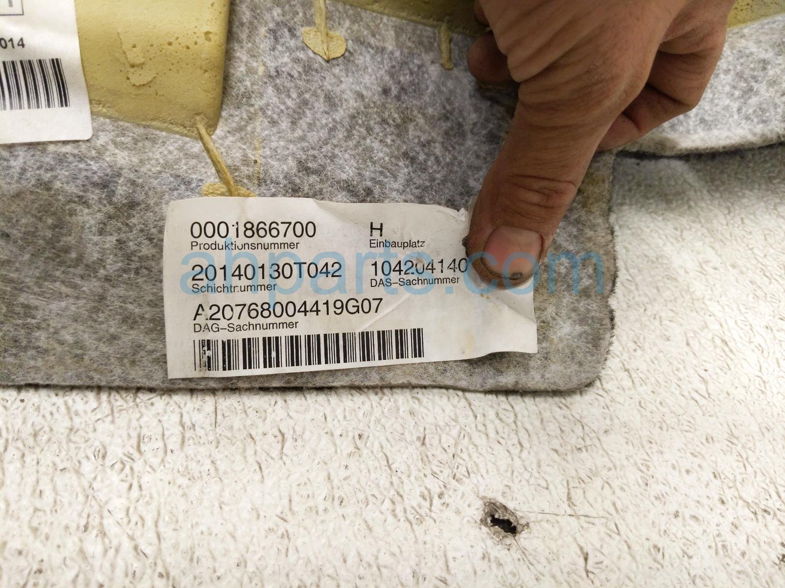 2014 Mercedes E350 ground rear floor carpet - black is a used item with a 1 year warranty. This OEM replacement ground rear floor carpet - black is genuine and has part numbers 207-680-34-01-9G07, and 20768034019G07. This Mercedes part sells for $195.