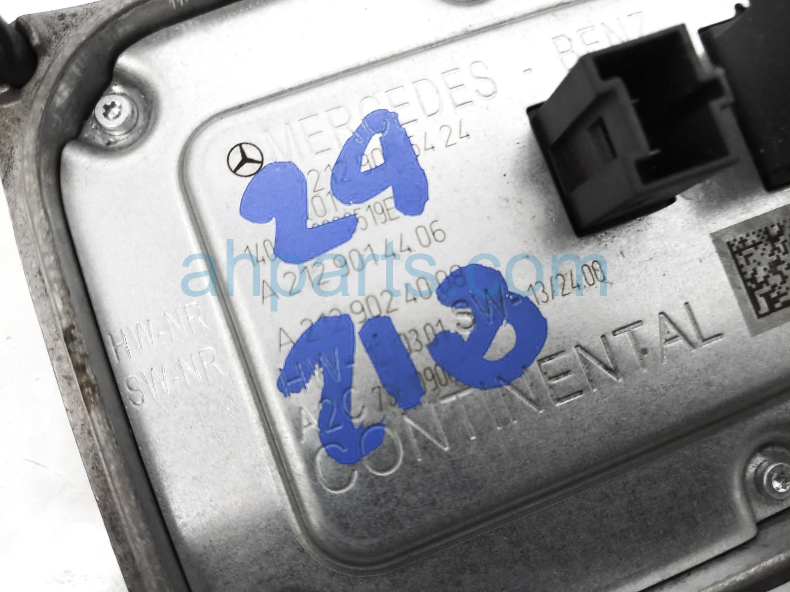 2014 Mercedes E350 hid ballast control module is a used item with a 1 year warranty. This OEM replacement hid ballast control module is genuine and has part numbers 212-900-54-24, and 2129005424. This Mercedes part sells for $99. This item has the following note: 'This item has a damaged tab and a few more damaged center section - grade c.'
