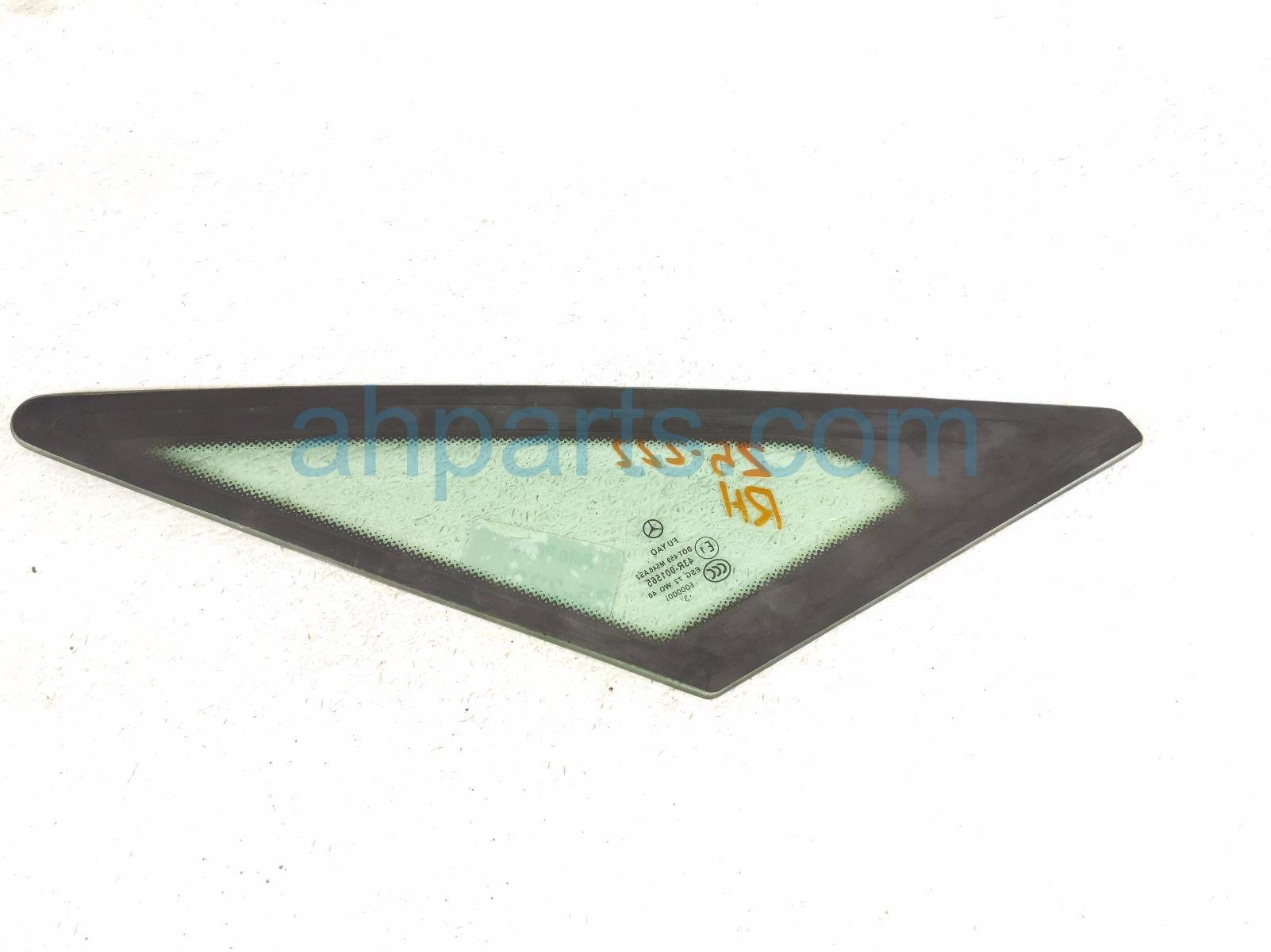 2014 Mercedes E350 passenger rearward quarter window glass is a used item with a 1 year warranty. This OEM replacement passenger rearward quarter window glass is genuine and has part numbers 207-670-04-39-PARTIAL, and 2076700439PARTIAL. This Mercedes part sells for $80.