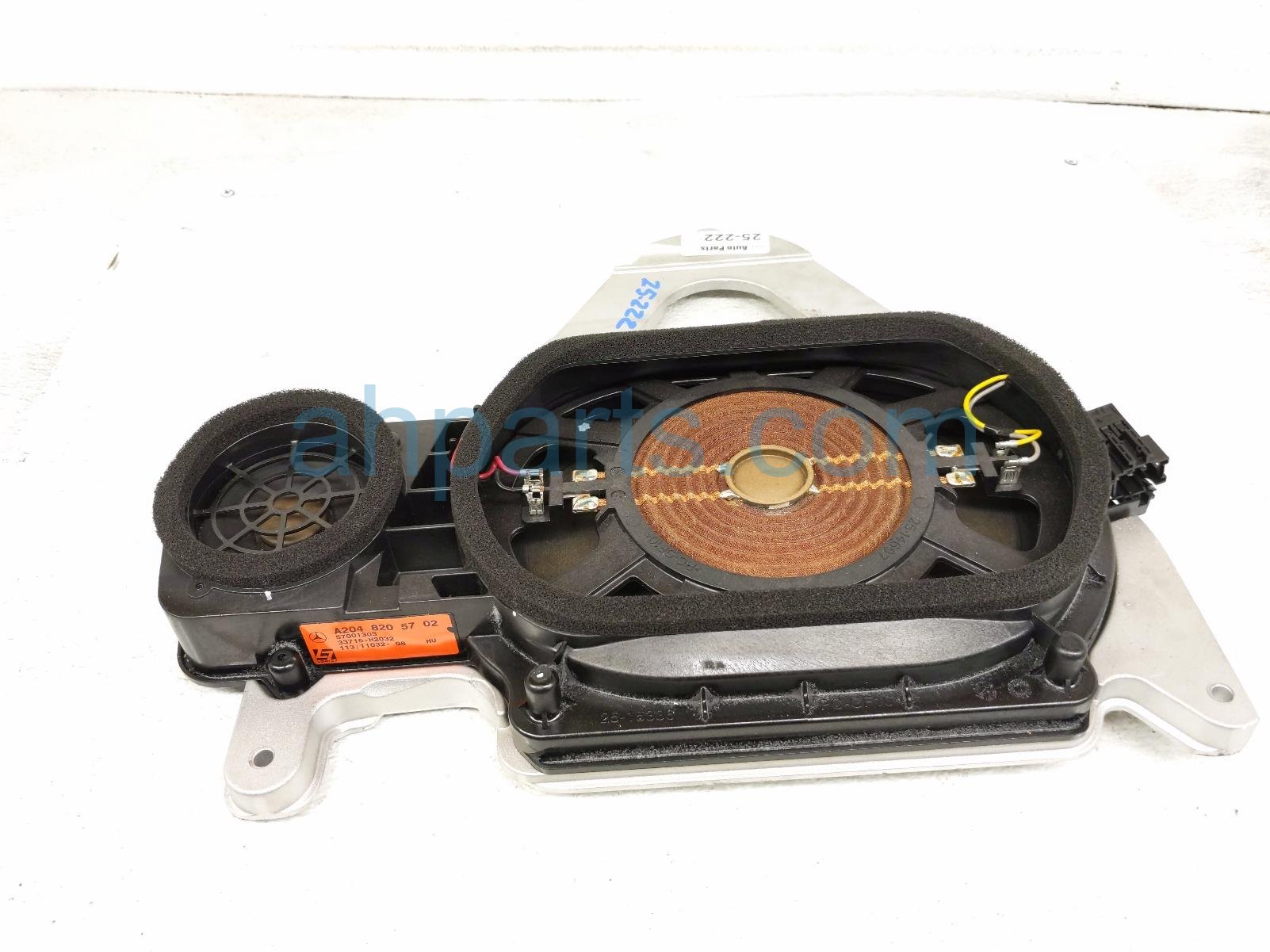 2014 Mercedes E350 rear passenger subwoofer speaker assy is a used item with a 1 year warranty. This OEM replacement rear passenger subwoofer speaker assy is genuine and has part numbers 204-820-57-02, and 2048205702. This Mercedes part sells for $100.