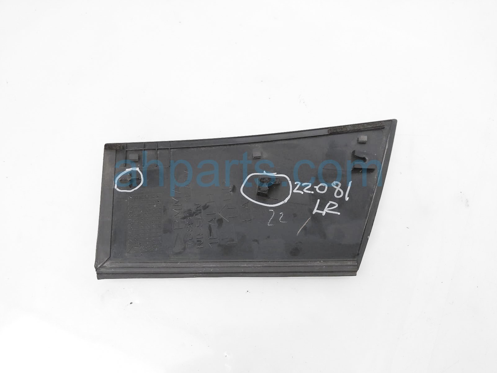 2014 Nissan 370Z driver quarter trim panel applique is a used item with a 1 year warranty. This OEM replacement driver quarter trim panel applique is genuine and has part numbers 76891-1EA0A, and 768911EA0A. This Nissan part sells for $40. This item has the following note: 'Broken tab.'