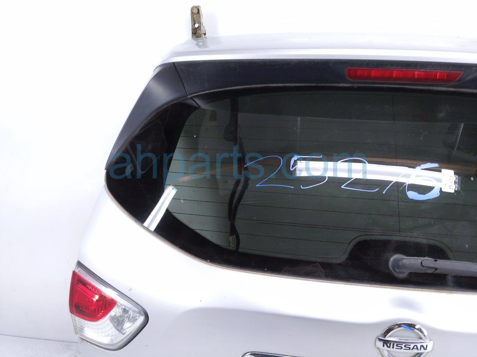 2014 Nissan Pathfinder deck trunk lid lift gate / tail gate - silver is a used item with a 1 year warranty. This OEM replacement deck trunk lid lift gate / tail gate - silver is genuine and has part numbers 90100-3KA1A, 901003KA1A, 90300-3KA0A, 903003KA0A, 96030-3KA0E, 960303KA0E, 26550-3KA2A, 265503KA2A, 26555-3KA2A, 265553KA2A, 24071-3KA1A, and 240713KA1A. This Nissan part is for sale (please call for pricing). This item has the following note: 'This item has some light scuffs and is dirty.'