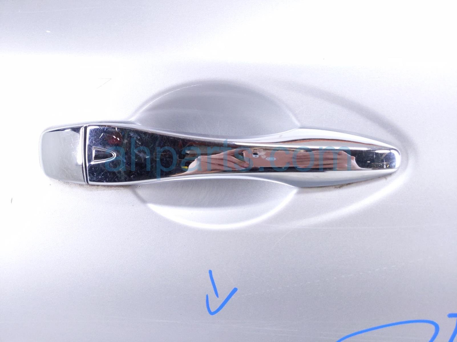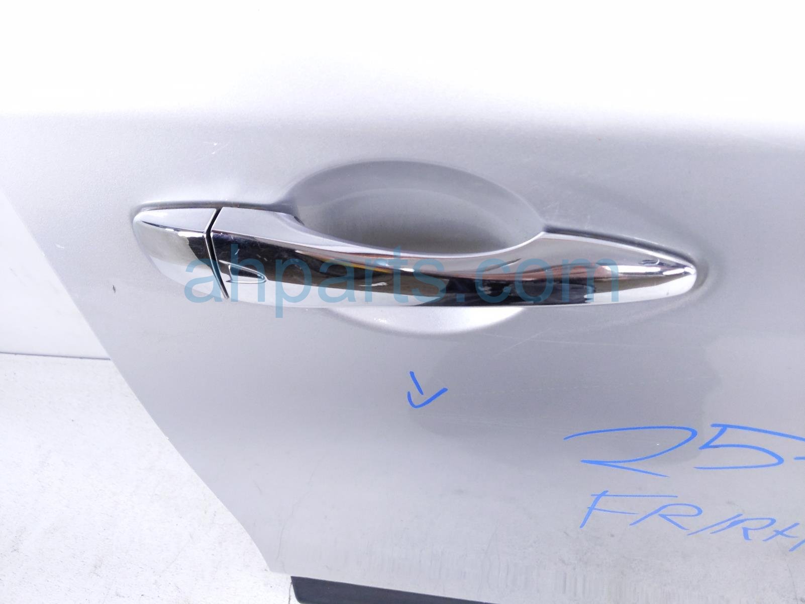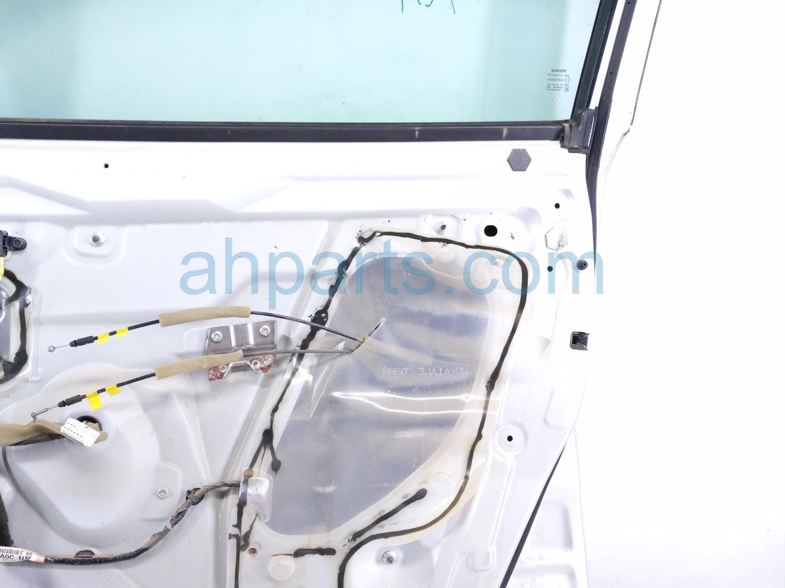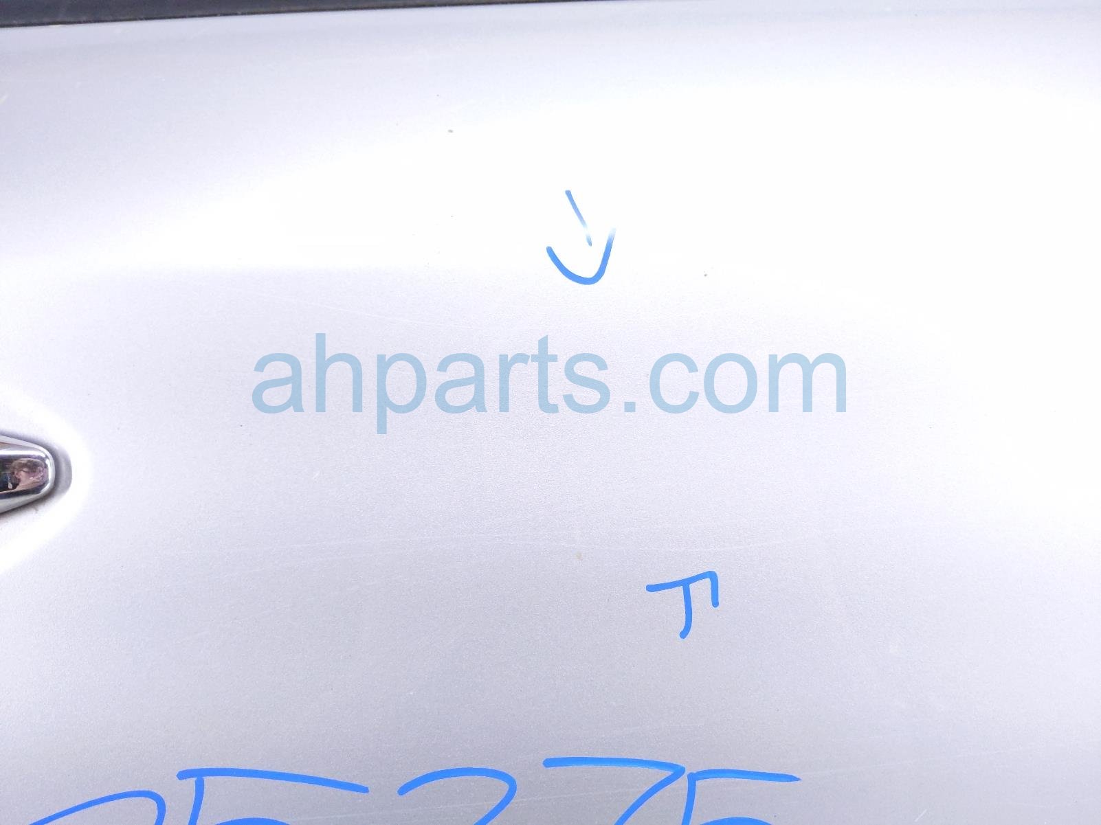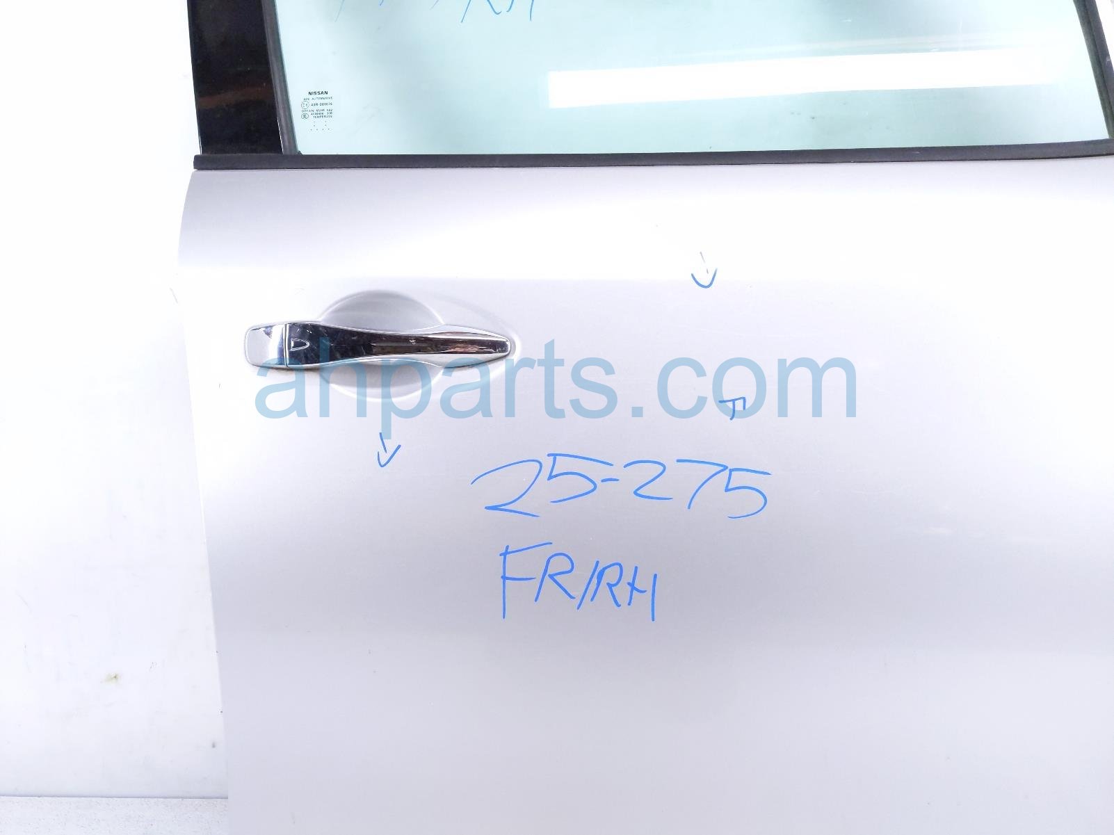 2014 Nissan Pathfinder front passenger door - silver - no mirror/trim is a used item with a 1 year warranty. This OEM replacement front passenger door - silver - no mirror/trim is genuine and has part numbers 80100-3KA0A, and 801003KA0A. This Nissan part sells for $495. This item has the following note: 'This itme has some scratchez on the door handle.'