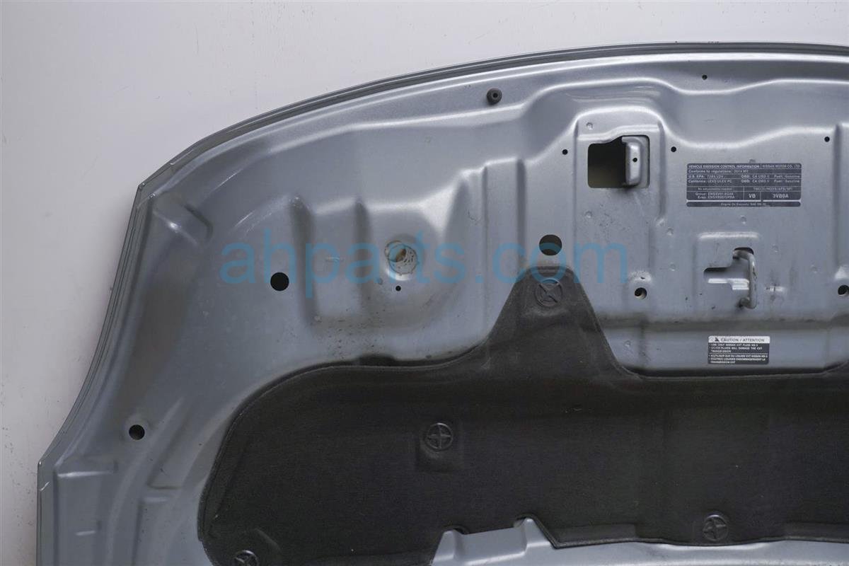 2014 Nissan Versa hood - silver - is a used item with a 1 year warranty. This OEM replacement hood - silver - is genuine and has part numbers FEA00-9KAMA, and FEA009KAMA. This Nissan part sells for $75. This item has the following note: 'Hood is bent near radiator/lock area. paint has peeled a bit and showing rust.'