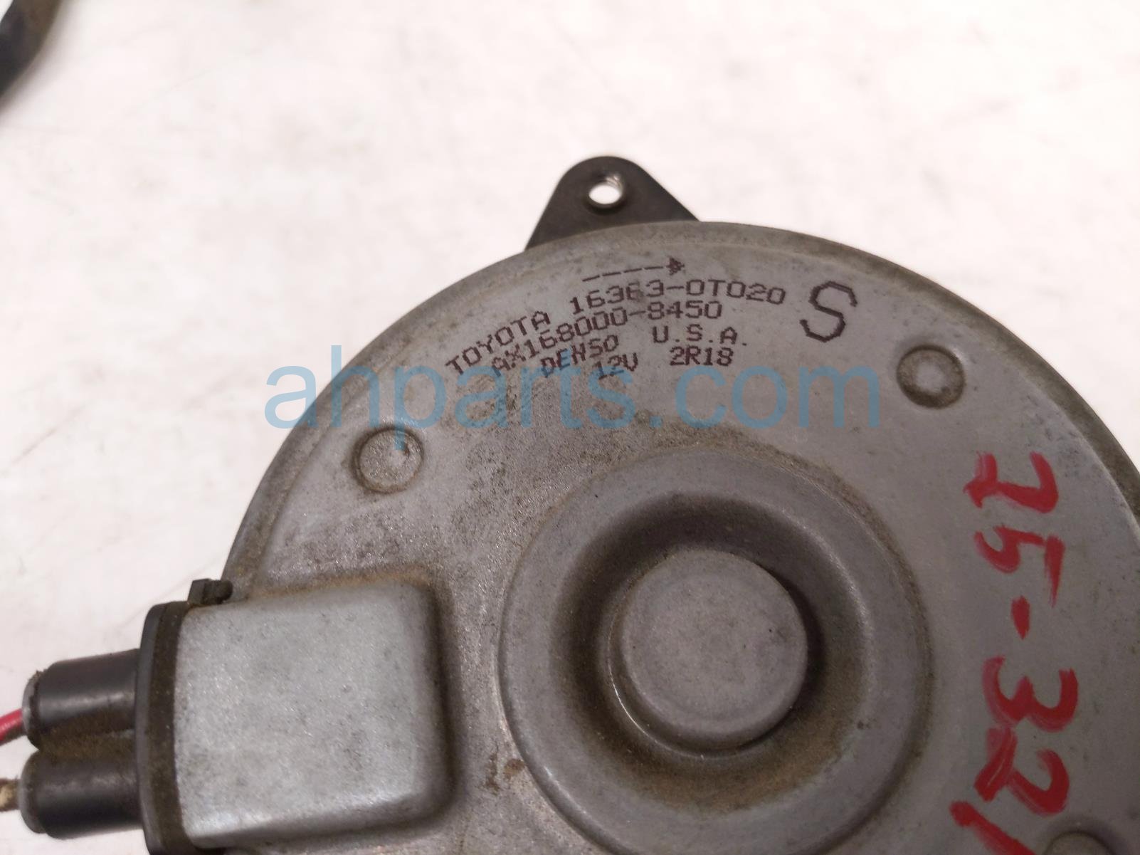 2014 Toyota Corolla cooling radiator fan motor is a used item with a 1 year warranty. This OEM replacement cooling radiator fan motor is genuine and has part numbers 16363-0T020, and 163630T020. This Toyota part is for sale (please call for pricing).