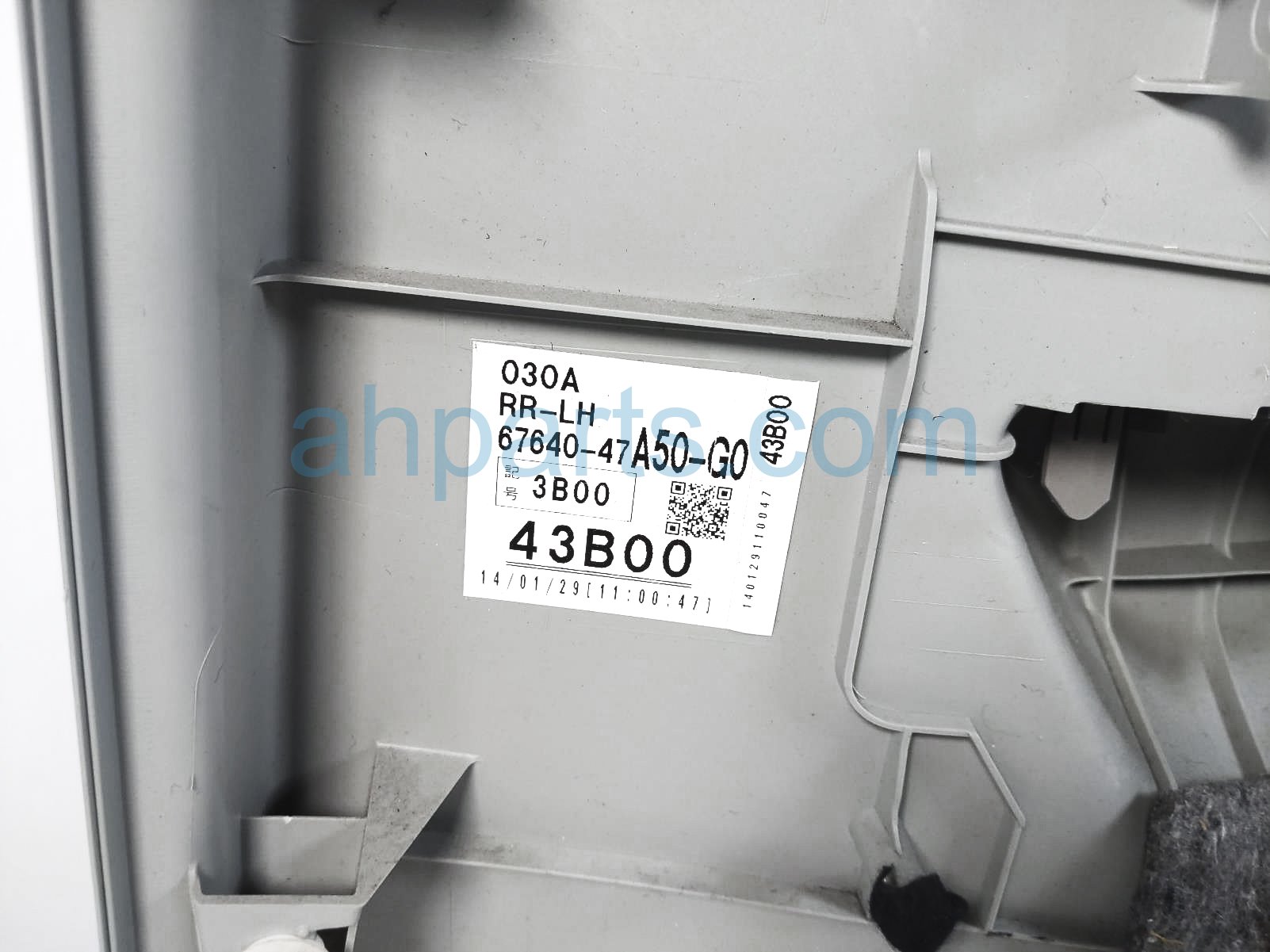 2014 Toyota Prius V rear liner rear driver inside door trim panel - grey is a used item with a 1 year warranty. This OEM replacement rear liner rear driver inside door trim panel - grey is genuine and has part numbers 67640-47A50-G0, and 6764047A50G0. This Toyota part sells for $75.