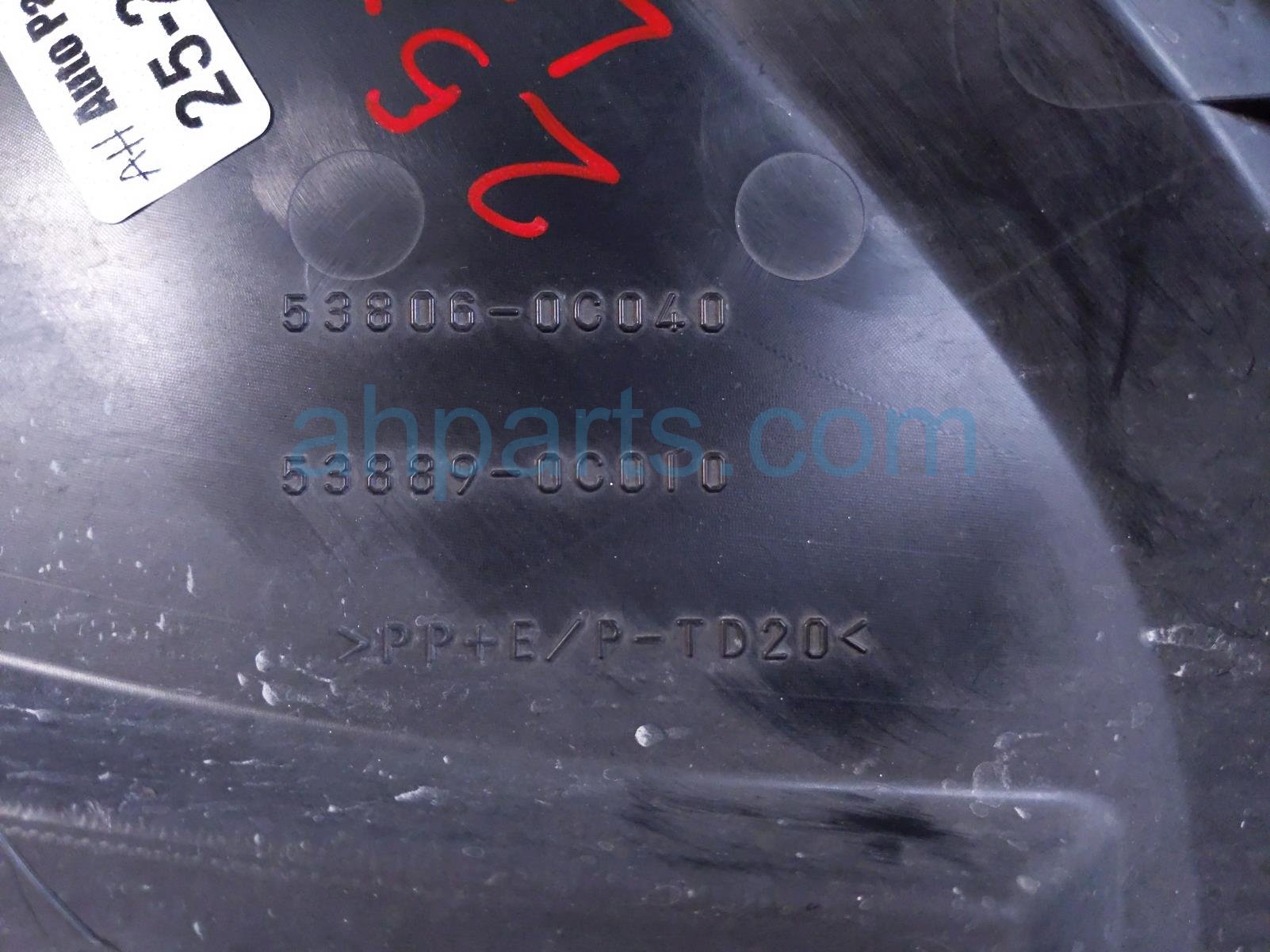 2014 Toyota Tundra front driver inner fender liner extension is a used item with a 1 year warranty. This OEM replacement front driver inner fender liner extension is genuine and has part numbers 53806-0C040, and 538060C040. This Toyota part sells for $25.