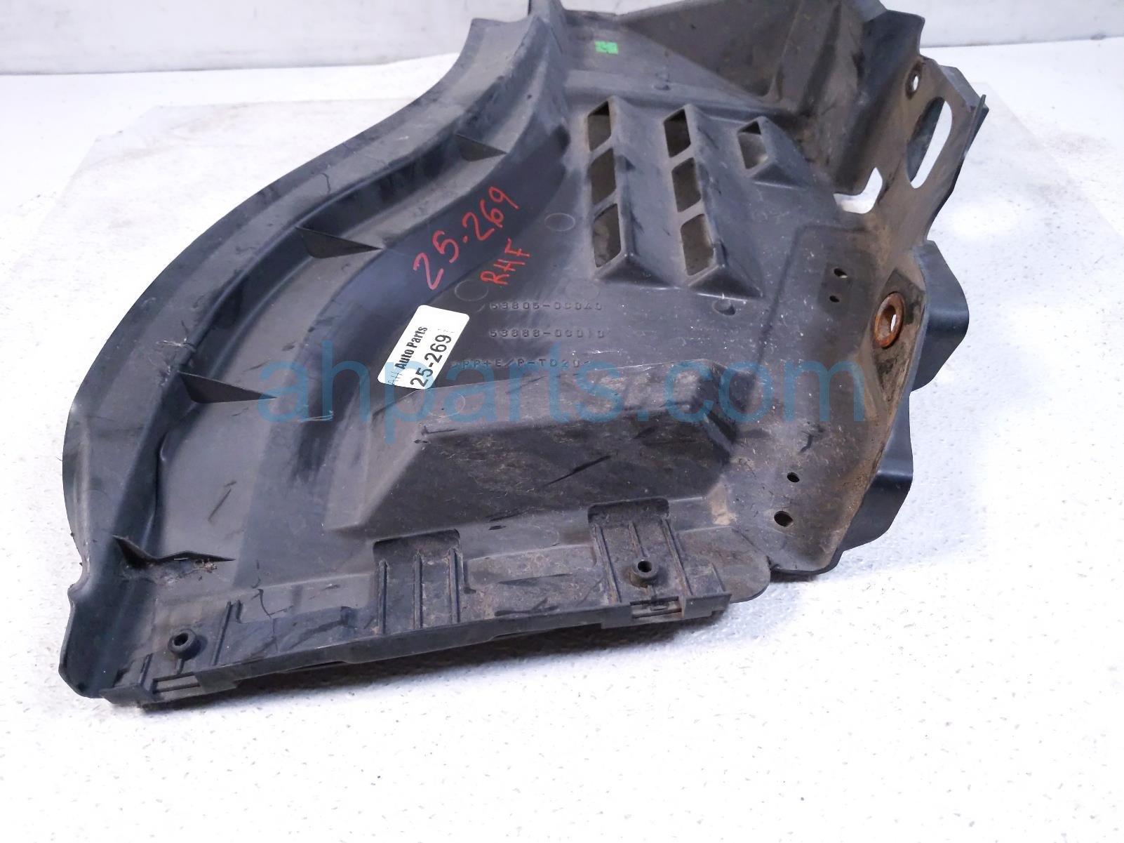 2014 Toyota Tundra front passenger inner fender liner extension is a used item with a 1 year warranty. This OEM replacement front passenger inner fender liner extension is genuine and has part numbers 53805-0C040, and 538050C040. This Toyota part sells for $25.