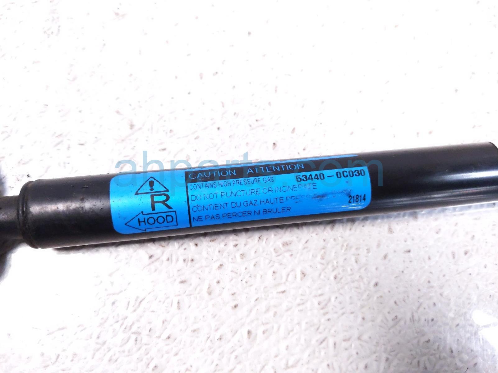2014 Toyota Tundra passenger hood strut / lift cylinder is a used item with a 1 year warranty. This OEM replacement passenger hood strut / lift cylinder is genuine and has part numbers 53440-0C030, and 534400C030. This Toyota part sells for $25.