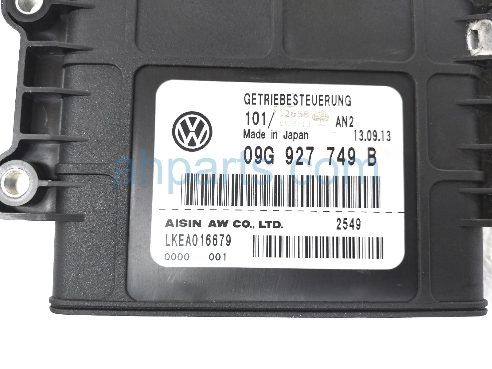 2014 Volkswagen Passat transmission control module (tcm) is a used item with a 1 year warranty. This OEM replacement transmission control module (tcm) is genuine and has part numbers 09G-927-749-B, and 09G927749B. This Volkswagen part sells for $50.