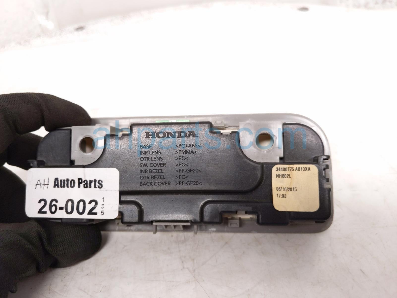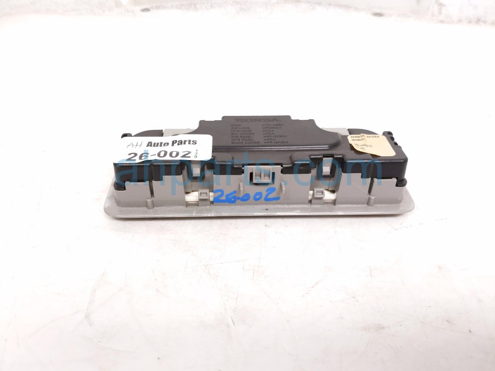 2015 Acura TLX roof console / map light - grey is a used item with a 1 year warranty. This OEM replacement roof console / map light - grey is genuine and has part numbers 34403-TZ5-A01ZB, 34403TZ5A01ZB, 34404-TZ5-A01ZB, and 34404TZ5A01ZB. This Acura part is for sale (please call for pricing).