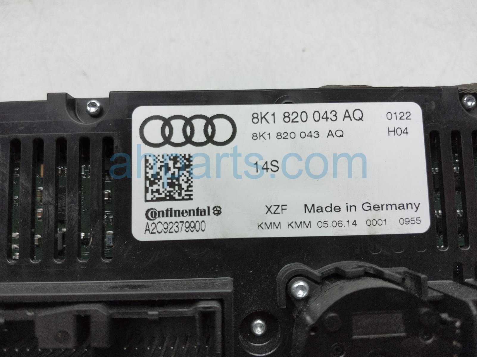 2015 Audi A4 Audi temperature climate heater/ac control(on dash) is a used item with a 1 year warranty. This OEM replacement temperature climate heater/ac control(on dash) is genuine and has part numbers 8K1-820-043-AQ, and 8K1820043AQ. This Audi part sells for $75. This item has the following note: 'Has minor scratches.'