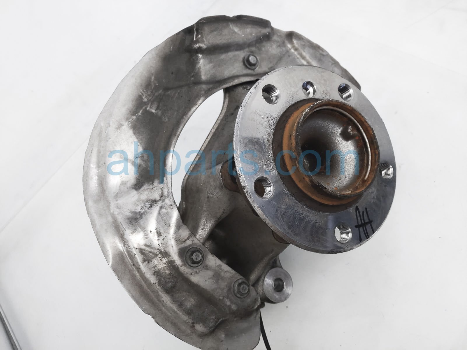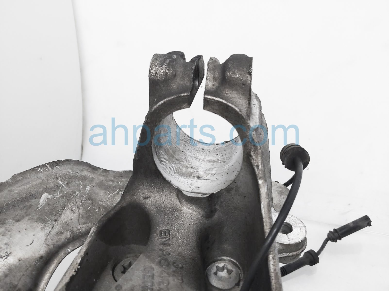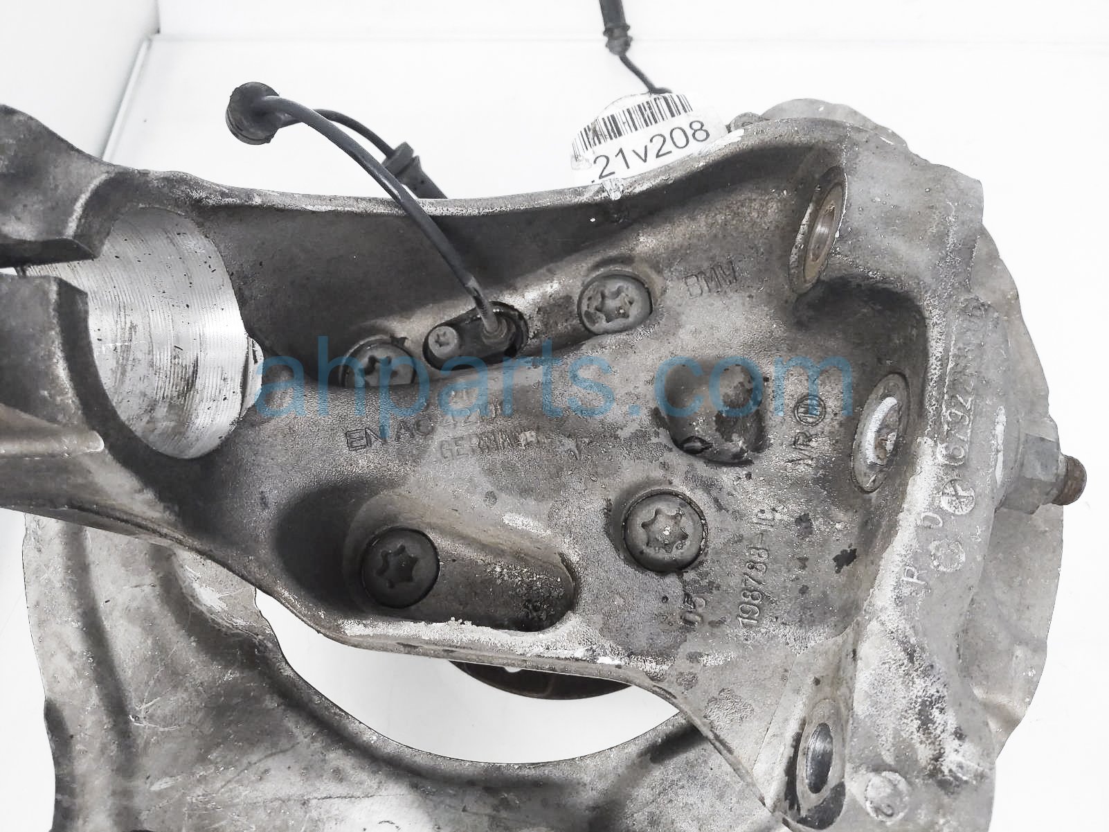2015 BMW 320I front passenger spindle knuckle hub is a used item with a 1 year warranty. This OEM replacement front passenger spindle knuckle hub is genuine and has part numbers 31-21-6-792-288, 31216792288, 31-20-6-876-840, and 31206876840. This BMW part sells for $75.