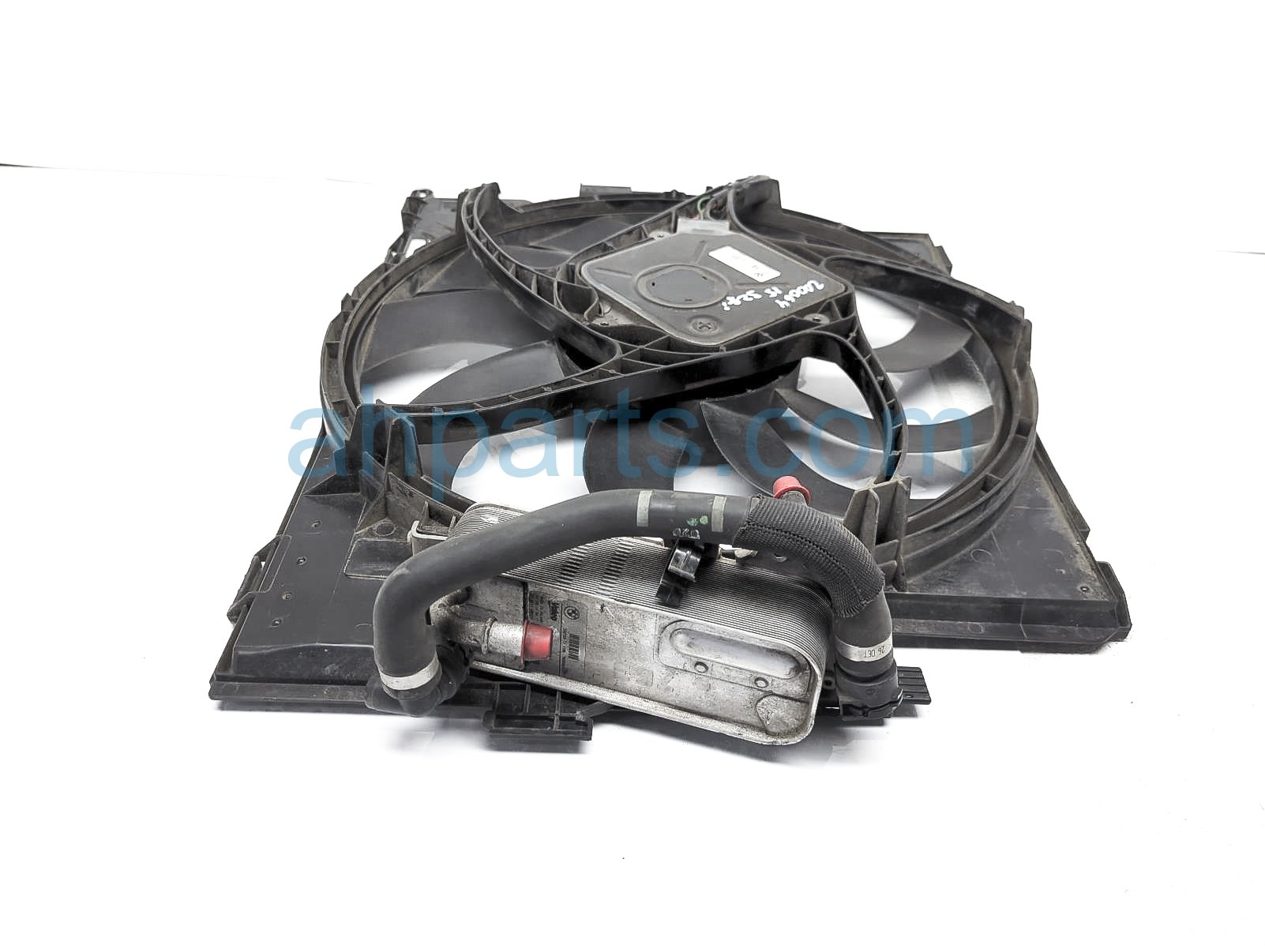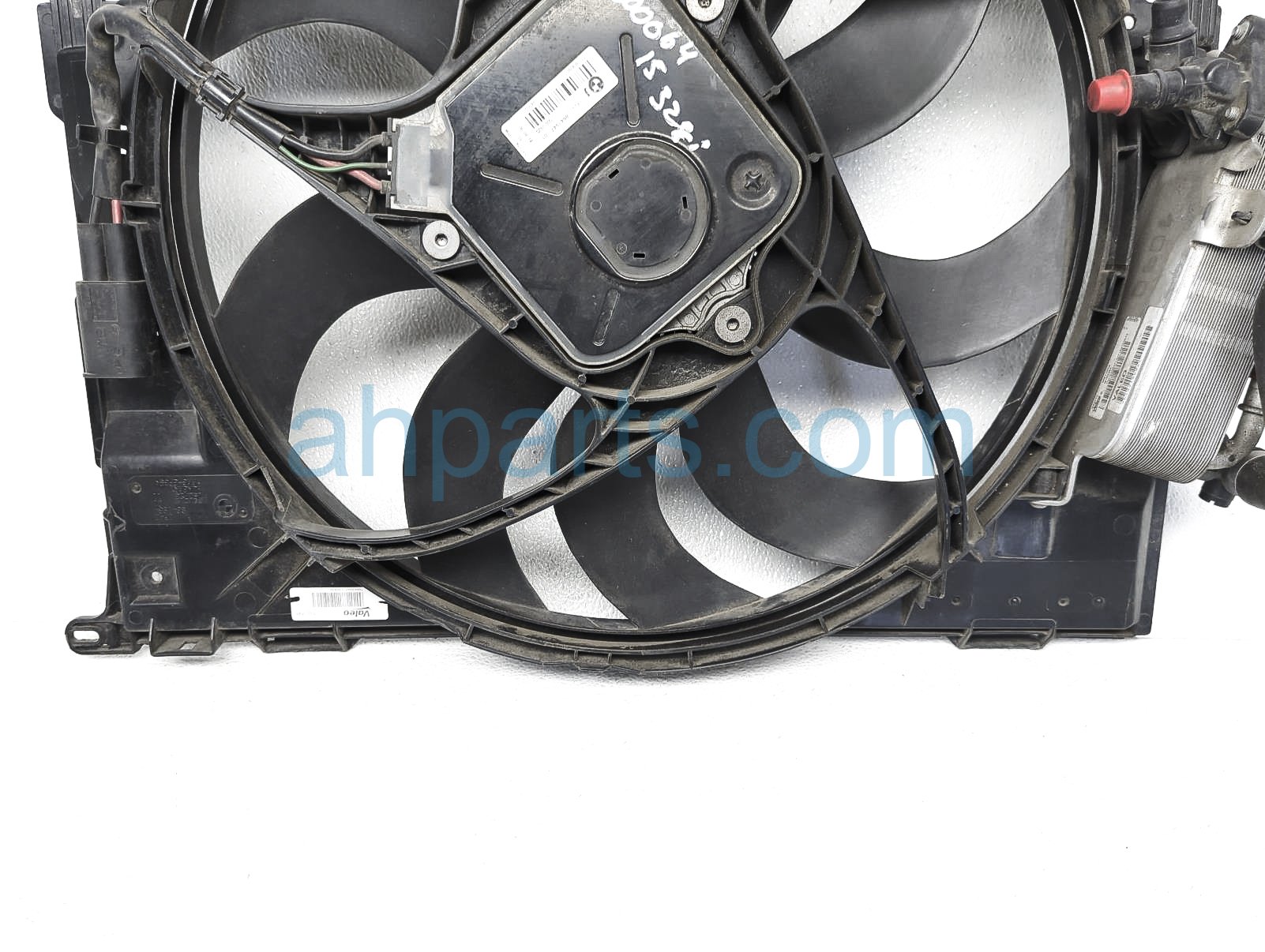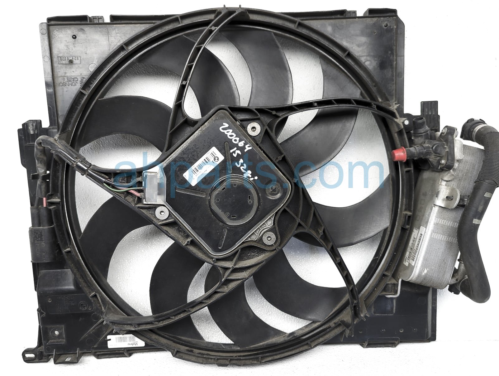 2015 BMW 328I radiator cooling fan assembly is a used item with a 1 year warranty. This OEM replacement radiator cooling fan assembly is genuine and has part numbers 17-42-8-641-964, 17428641964, 17-21-7-600-553, and 17217600553. This BMW part sells for $200.