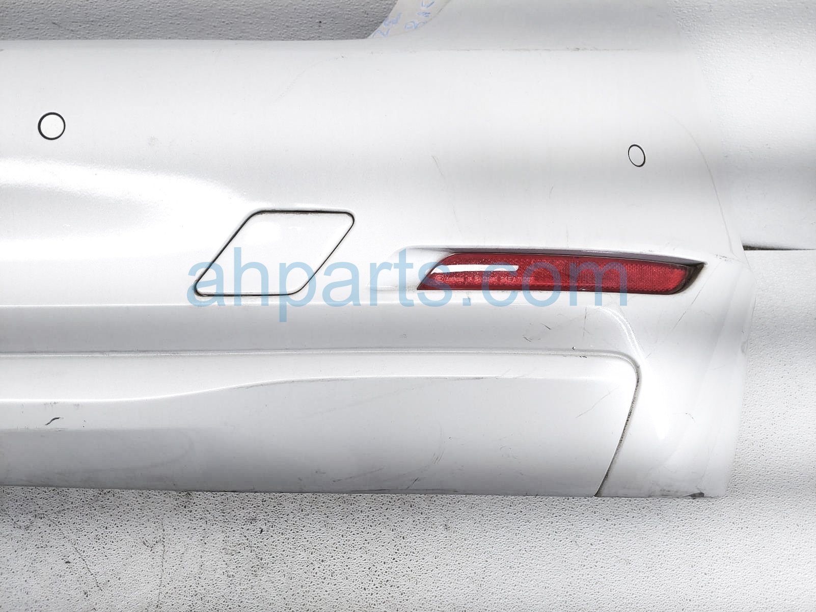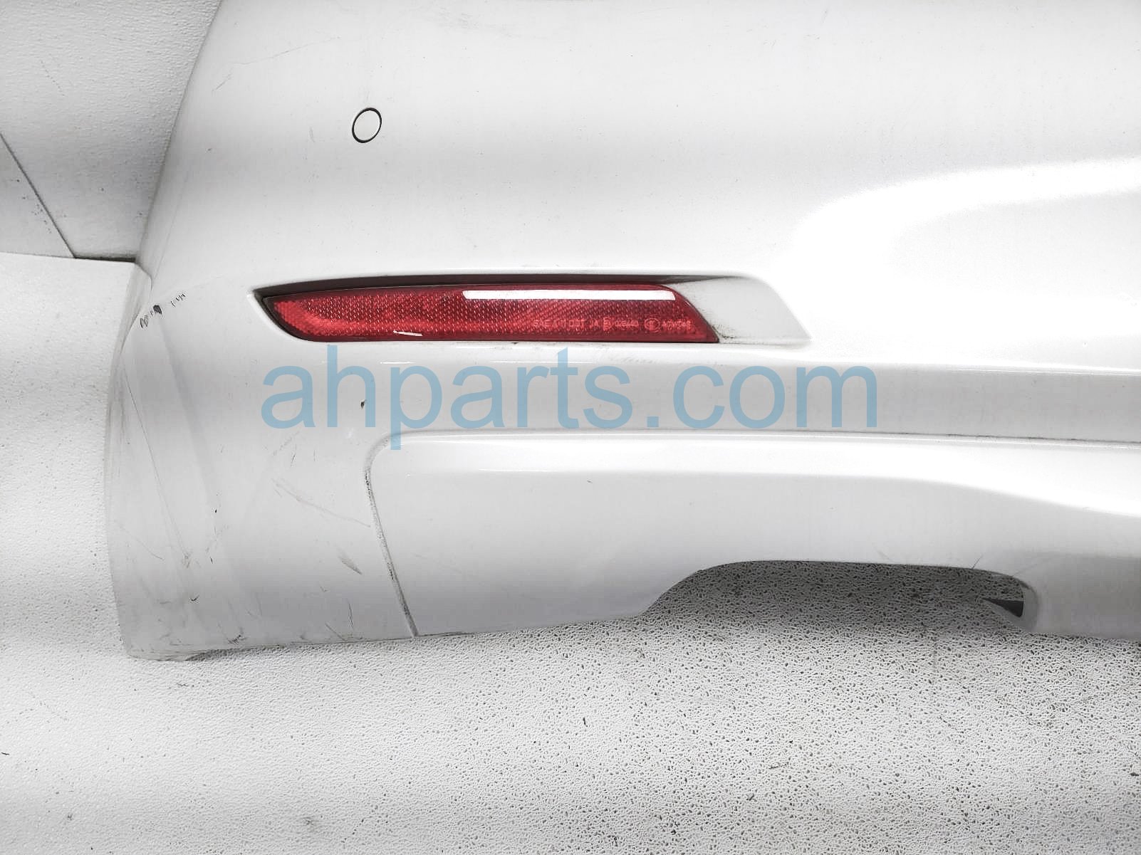 2015 BMW 328I rear bumper cover - white - scratchs is a used item with a 1 year warranty. This OEM replacement rear bumper cover - white - scratchs is genuine and has part numbers 51-12-7-312-734, 51127312734, 63-14-7-382-234, 63147382234, 63-14-7-382-233, 63147382233, 66-20-9-261-588, and 66209261588. This BMW part sells for $250. This item has the following note: 'This item has deep scuffs on the lwoer section and deep scratches all over - grade b.'