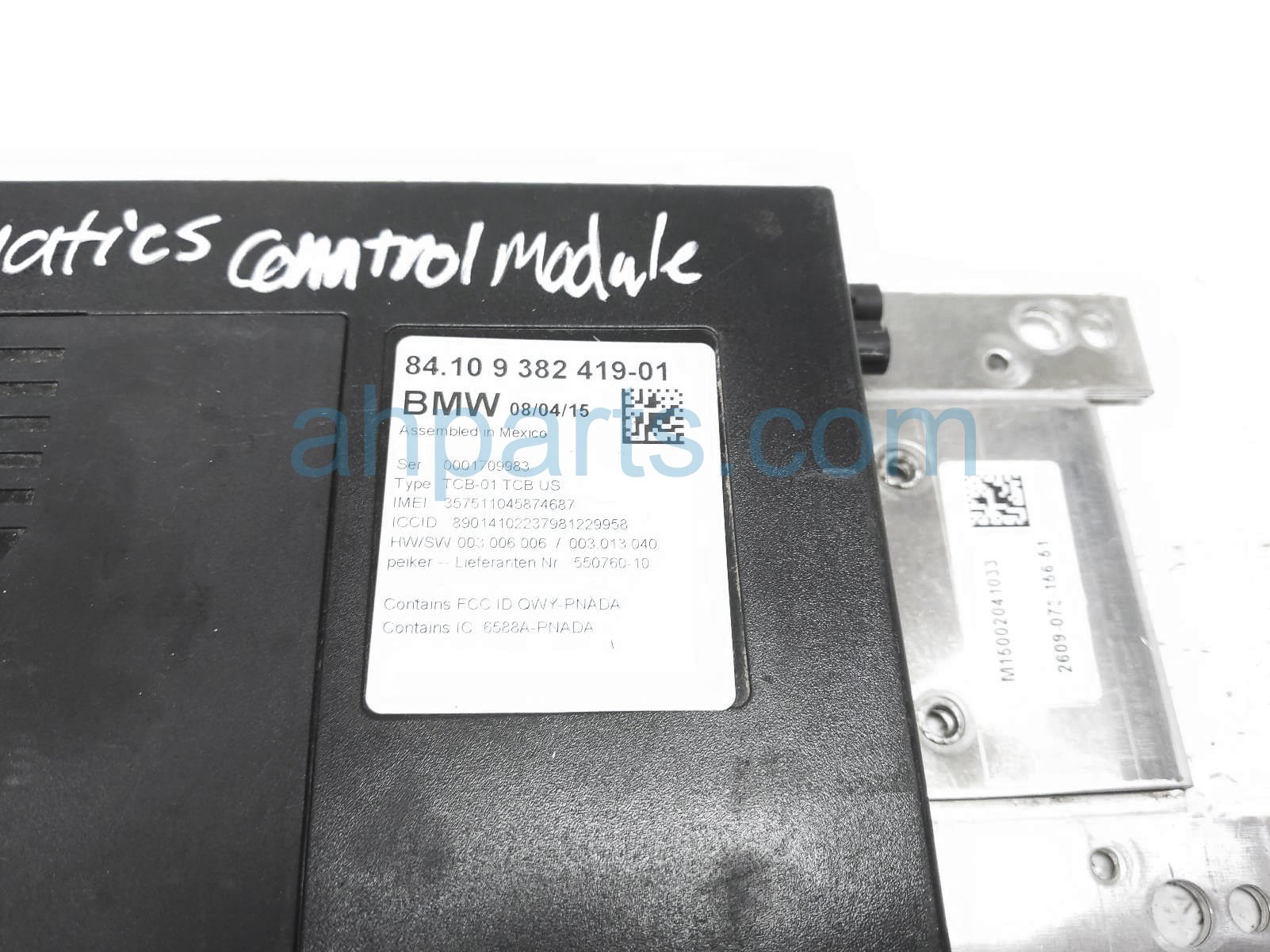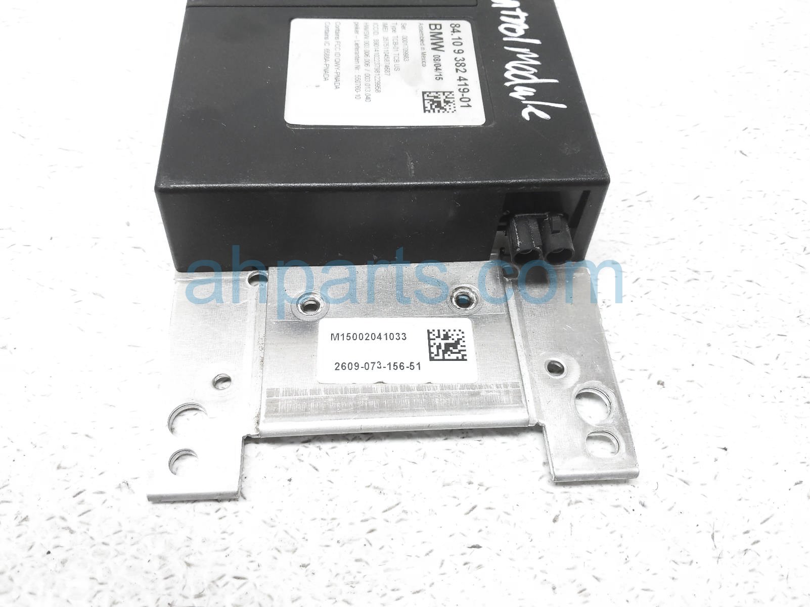 2015 BMW 328I telematics control module unit is a used item with a 1 year warranty. This OEM replacement telematics control module unit is genuine and has part numbers 84-10-9-382-419, and 84109382419. This BMW part sells for $40.