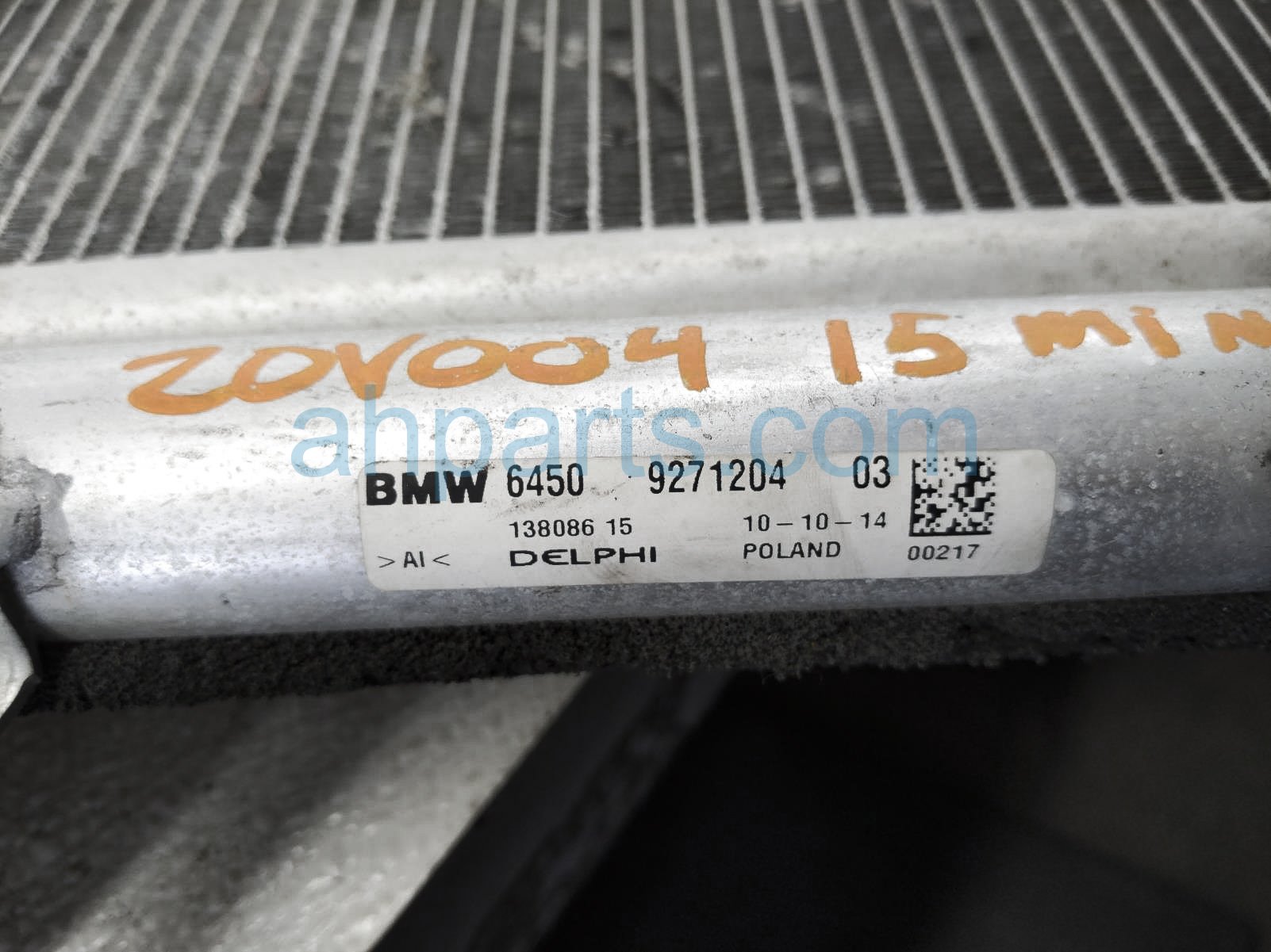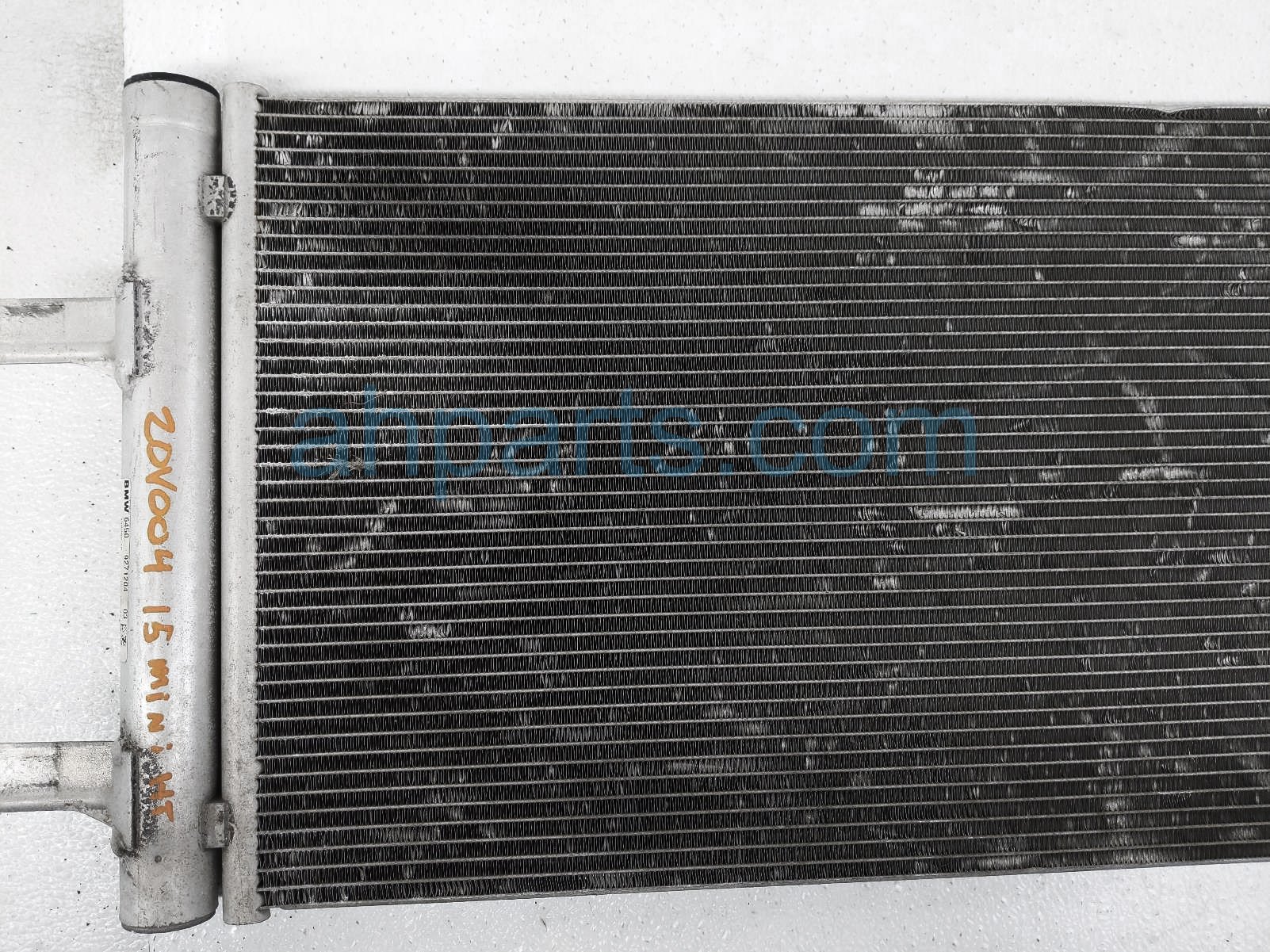 2015 BMW Mini HT ac condenser is a used item with a 1 year warranty. This OEM replacement ac condenser is genuine and has part numbers 64-50-9-271-204, and 64509271204. This BMW part sells for $100. This item has the following note: 'This item has a lot of bent fins - grade c.'