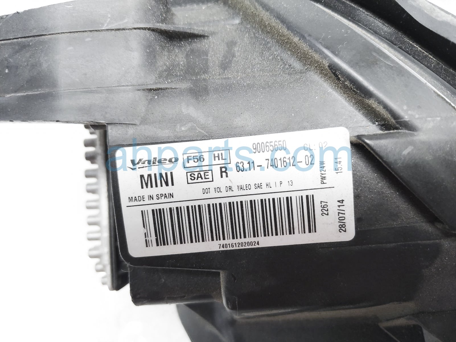 2015 BMW Mini HT headlight passenger head lamp / light - is a used item with a 1 year warranty. This OEM replacement headlight passenger head lamp / light - is genuine and has part numbers 63-11-7-401-612, and 63117401612. This BMW part sells for $475. This item has the following note: 'Scuffed lens.'