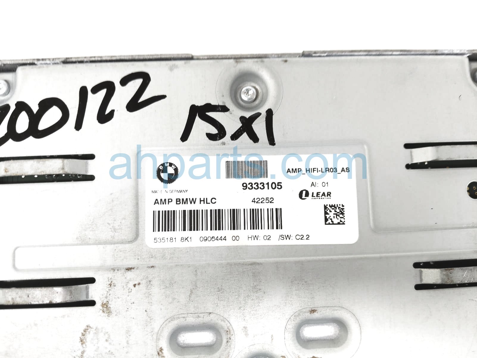 2015 BMW X1 audio amplifier unit - w/o harman is a used item with a 1 year warranty. This OEM replacement audio amplifier unit - w/o harman is genuine and has part numbers 65-12-2-622-674, 65122622674, 65-12-9-333-105, and 65129333105. This BMW part sells for $40.
