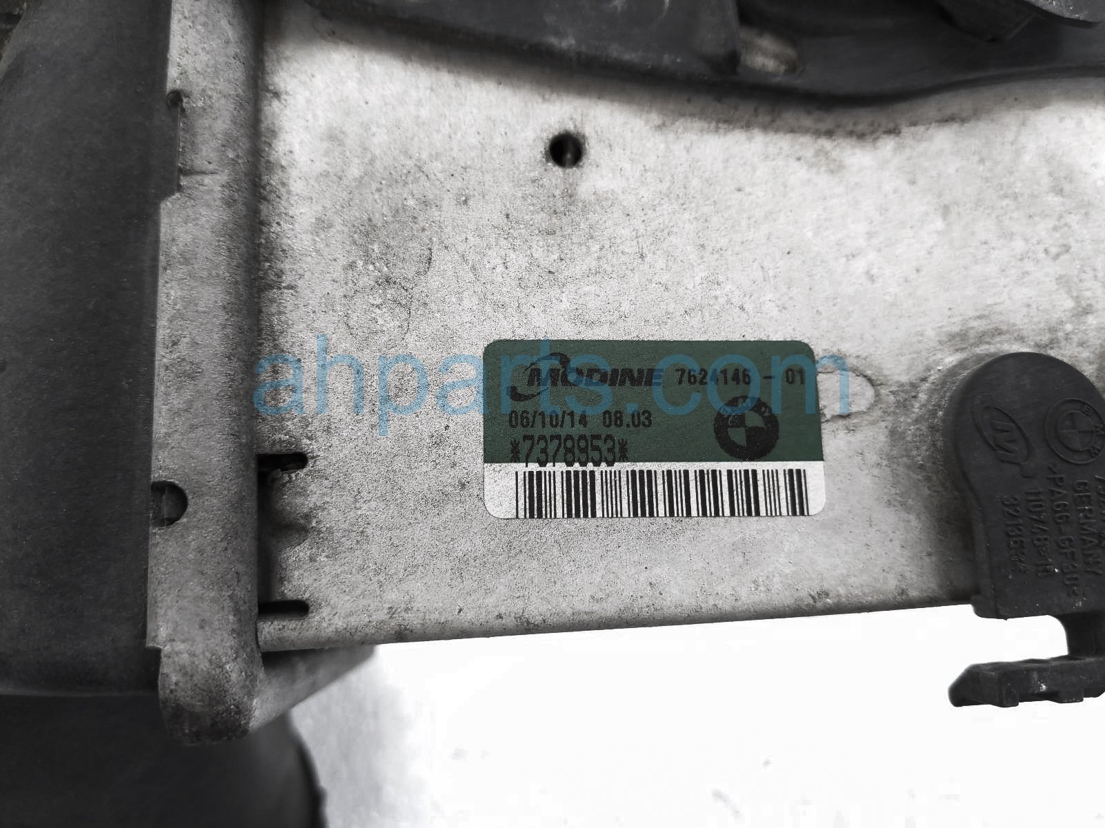2015 BMW X1 intercooler assy is a used item with a 1 year warranty. This OEM replacement intercooler assy is genuine and has part numbers 17-51-7-624-146, and 17517624146. This BMW part sells for $125. This item has the following note: 'This item has a small area where the fins are bent - grade a.'