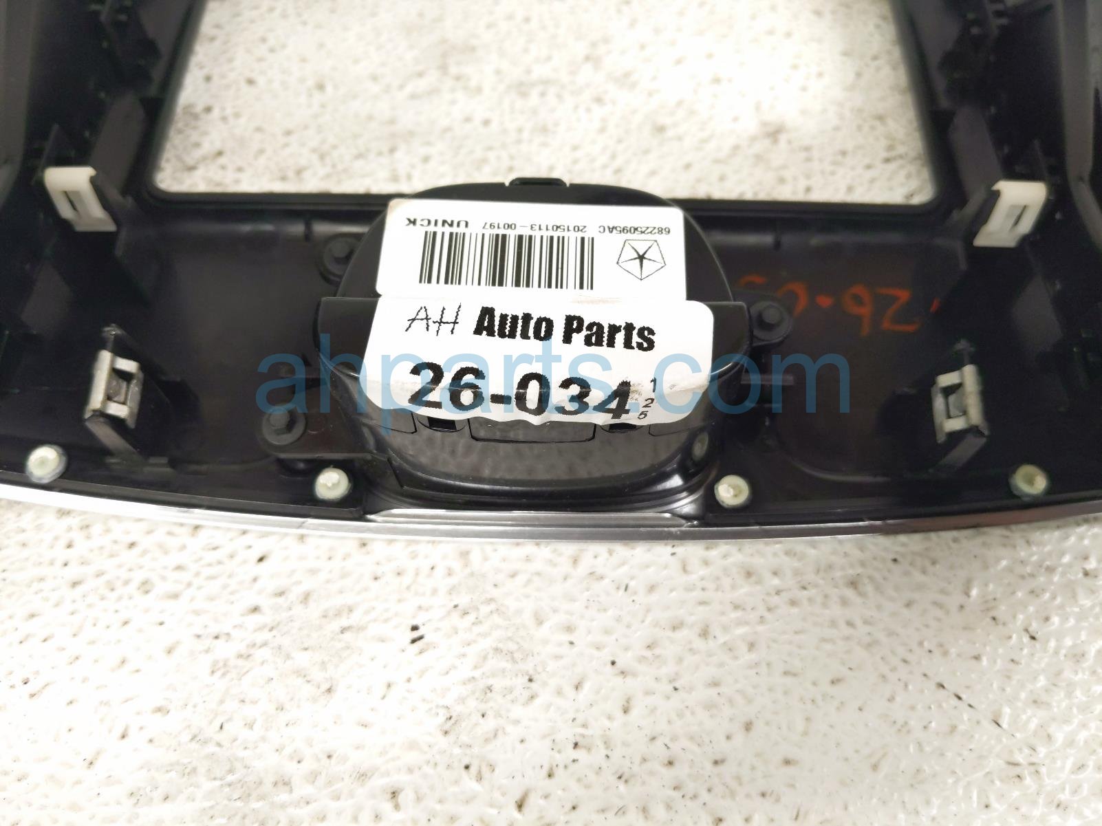 2015 Chrysler 300 center trim bezel w/clock&vents-blk is a used item with a 1 year warranty. This OEM replacement center trim bezel w/clock&vents-blk is genuine and has part numbers 68225095AC, and 68274708AC. This Chrysler part is for sale (please call for pricing).