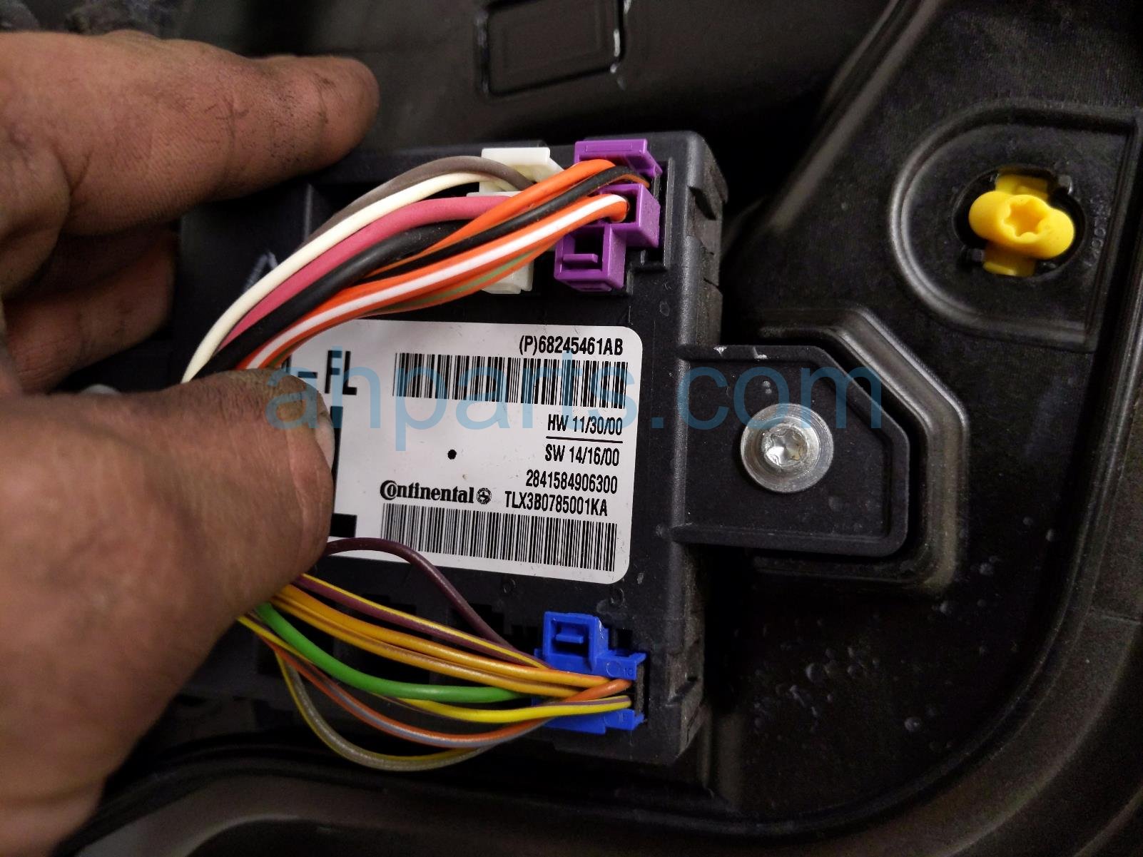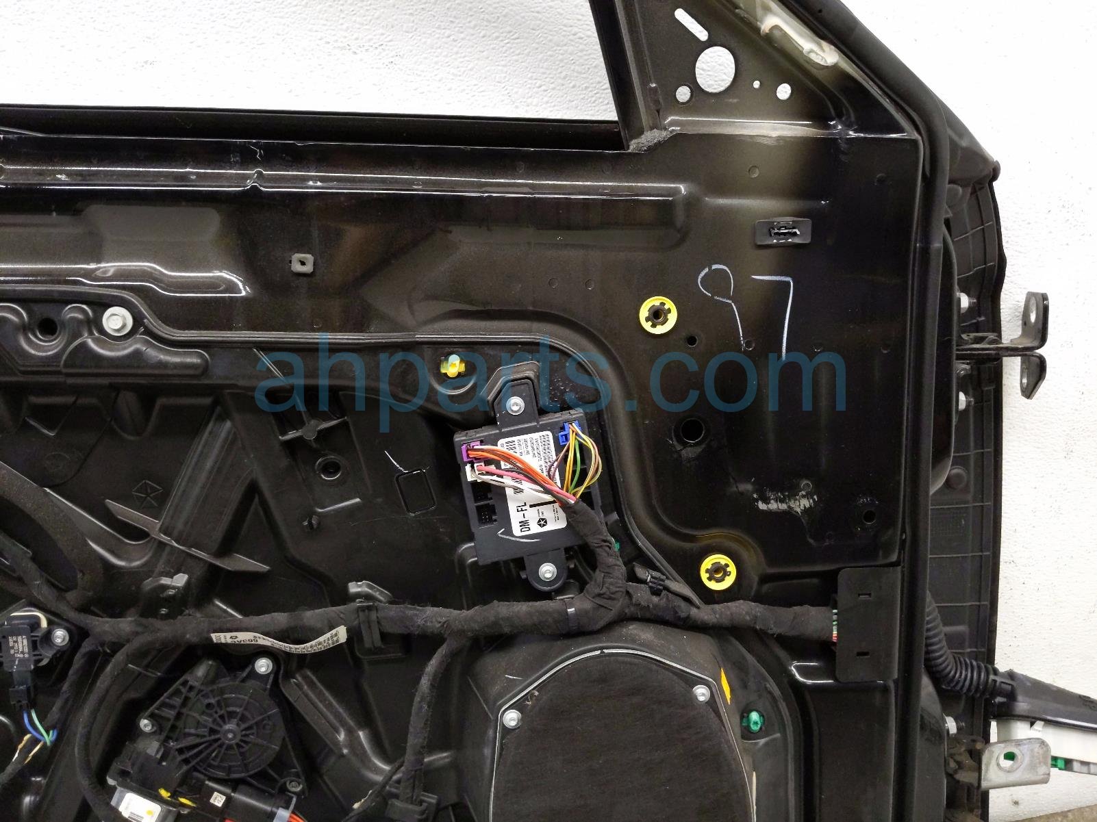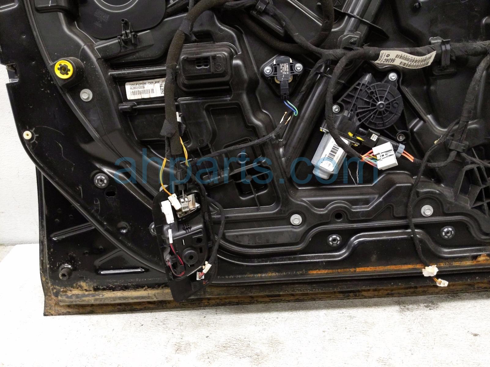 2015 Chrysler 300 front driver door - black - no mirror/trim is a used item with a 1 year warranty. This OEM replacement front driver door - black - no mirror/trim is genuine and has part numbers 68103997AB, 68143987AA, 68127961AB, and 68068669AC. This Chrysler part sells for $495. This item has the following note: 'This item has some scuffs and some scracthes.'