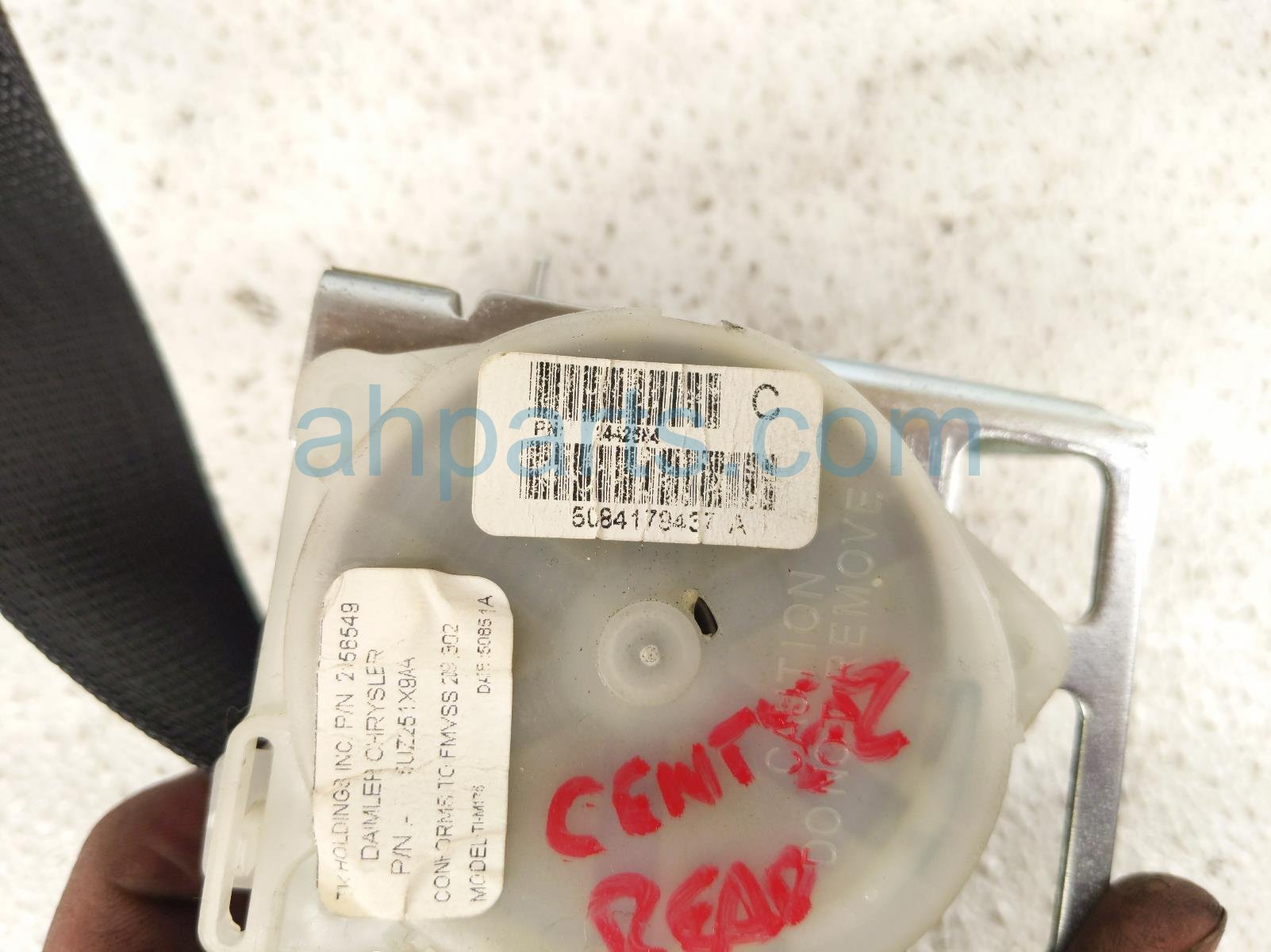 2015 Chrysler 300 rear mid seat belt retractor - black is a used item with a 1 year warranty. This OEM replacement rear mid seat belt retractor - black is genuine and has part numbers 5UZ251X9AA. This Chrysler part is for sale (please call for pricing).