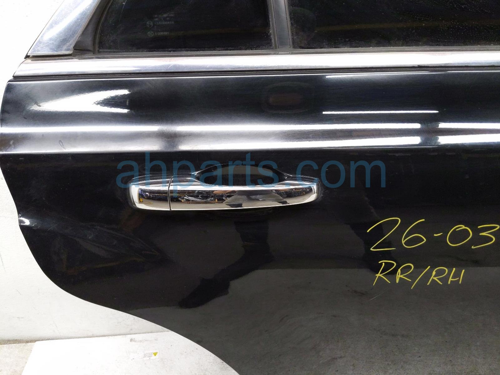 2015 Chrysler 300 rear passenger door - black - no inside trim is a used item with a 1 year warranty. This OEM replacement rear passenger door - black - no inside trim is genuine and has part numbers 68103998AA, 68127962AD, and 55113490AB. This Chrysler part sells for $199. This item has the following note: 'This item has some scuff and some deep scracthes.'