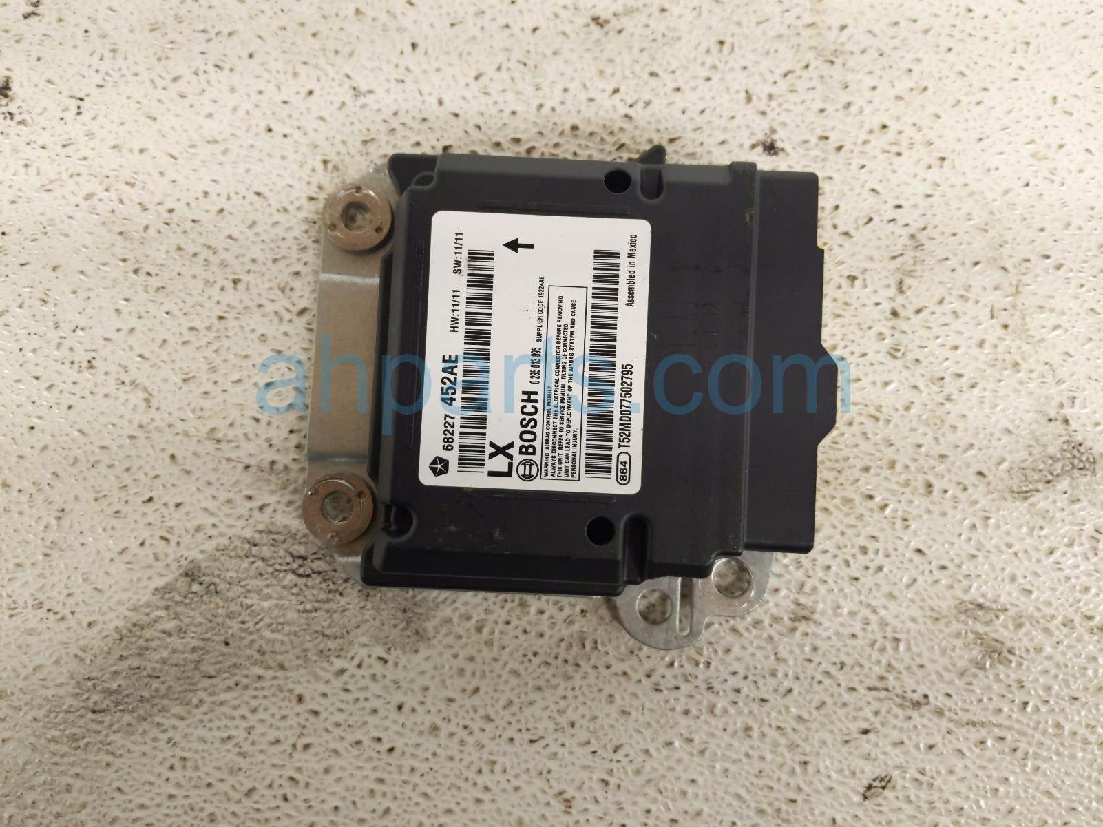 2015 Chrysler 300 srs airbag computer module - good is a used item with a 1 year warranty. This OEM replacement srs airbag computer module - good is genuine and has part numbers 68227452AE. This Chrysler part is for sale (please call for pricing).