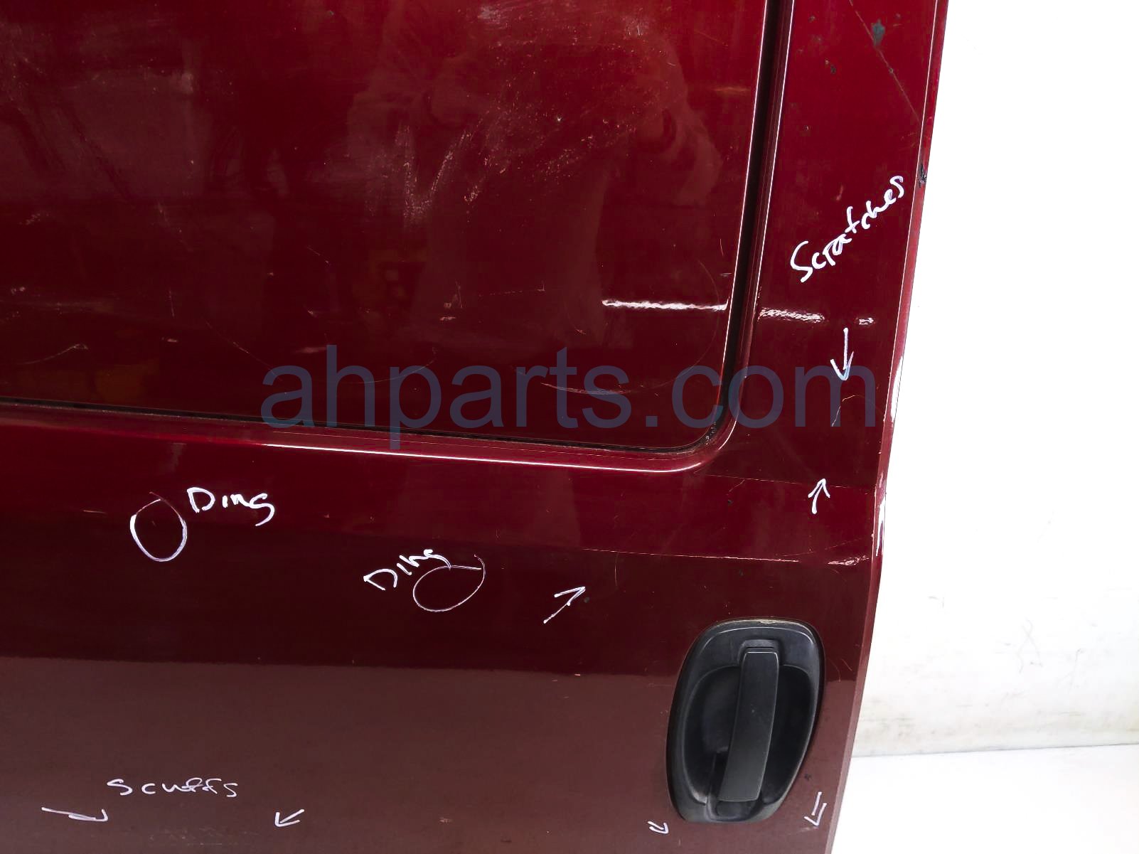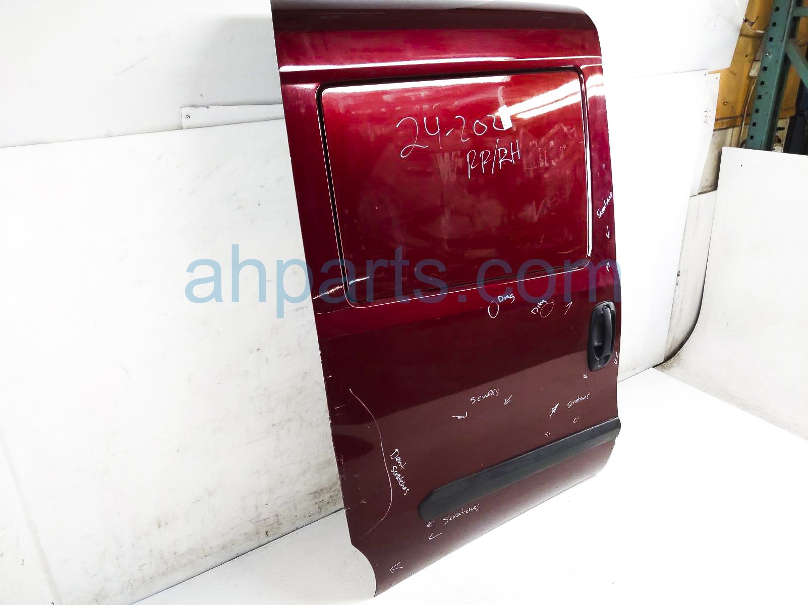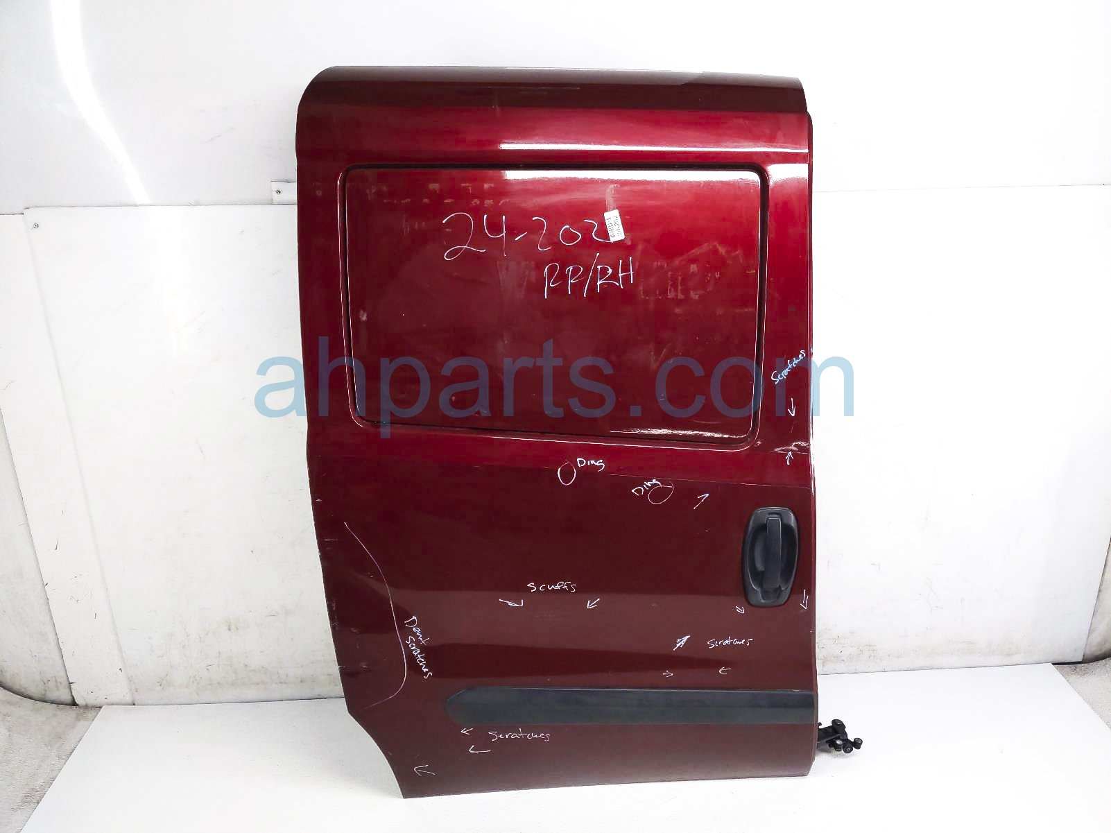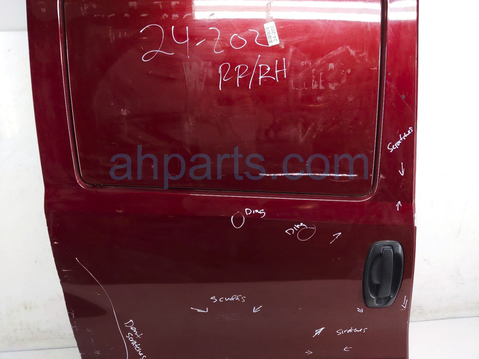 2015 Dodge Promaster City rear passenger door - red - no inside trim is a used item with a 1 year warranty. This OEM replacement rear passenger door - red - no inside trim is genuine and has part numbers 68461105AA. This Dodge part sells for $650. This item has the following note: 'This item has a dent on the back middle section and it has 2 dings middle section and multiple scratches/scuffs - grade c.'