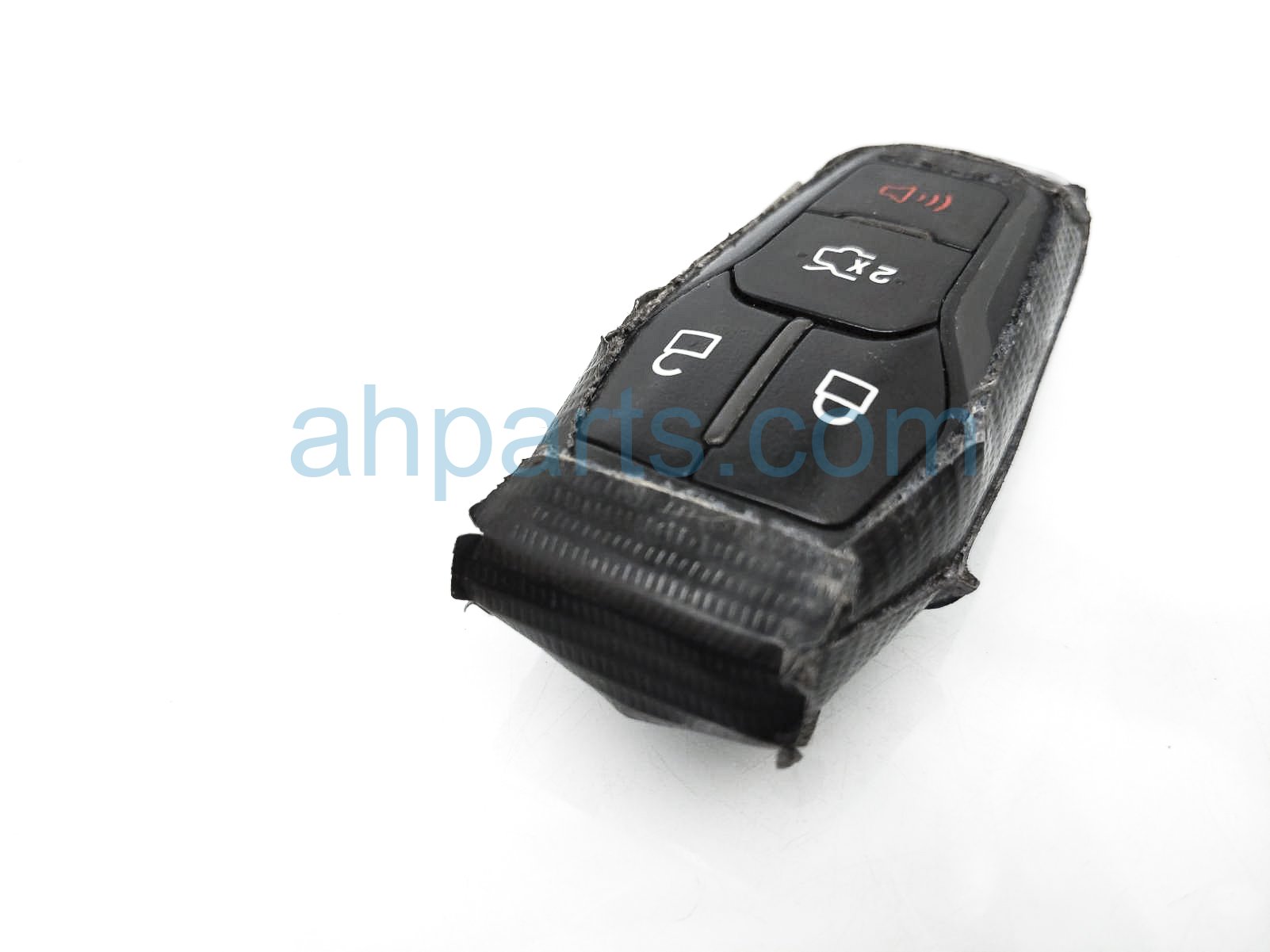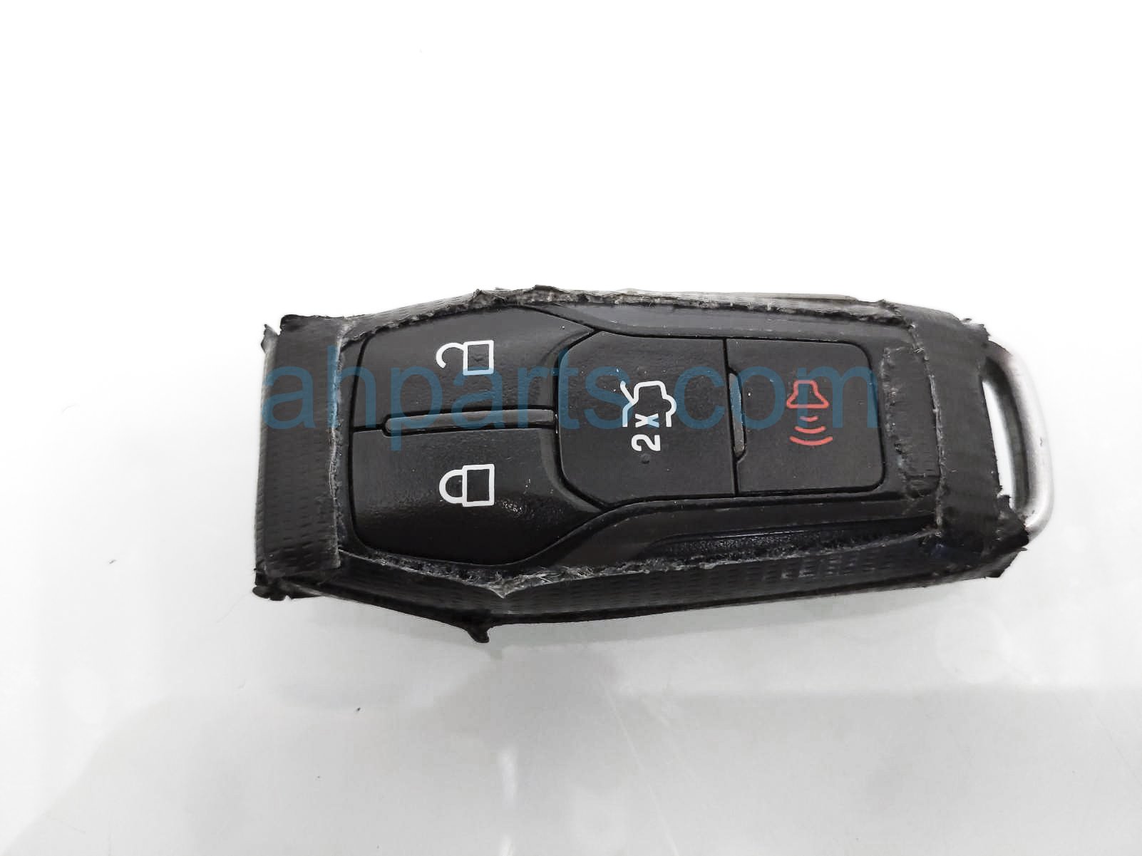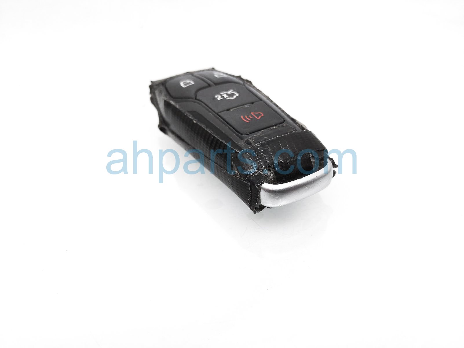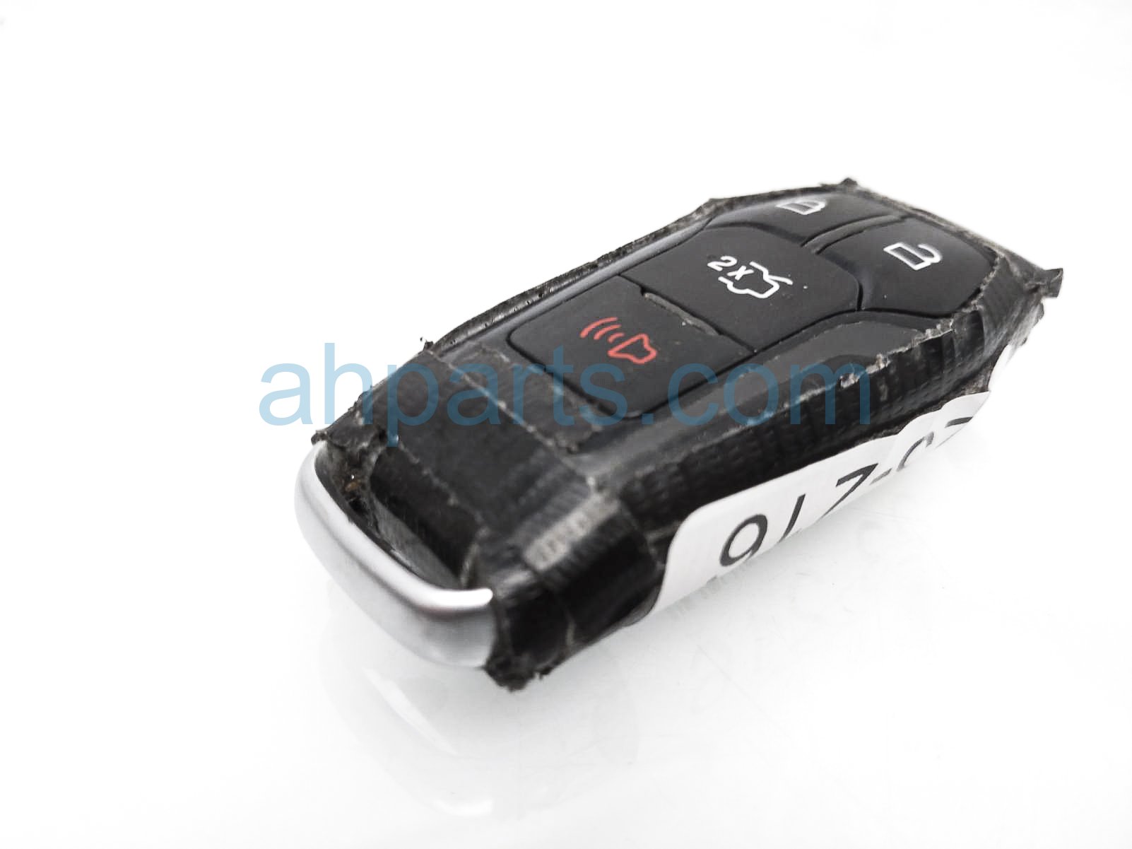2015 Ford Mustang key fob is a used item with a 1 year warranty. This OEM replacement key fob is genuine and has part numbers FR3Z15K601F. This Ford part sells for $50. This item has the following note: 'This item has duct tape all around the key - grade b.'