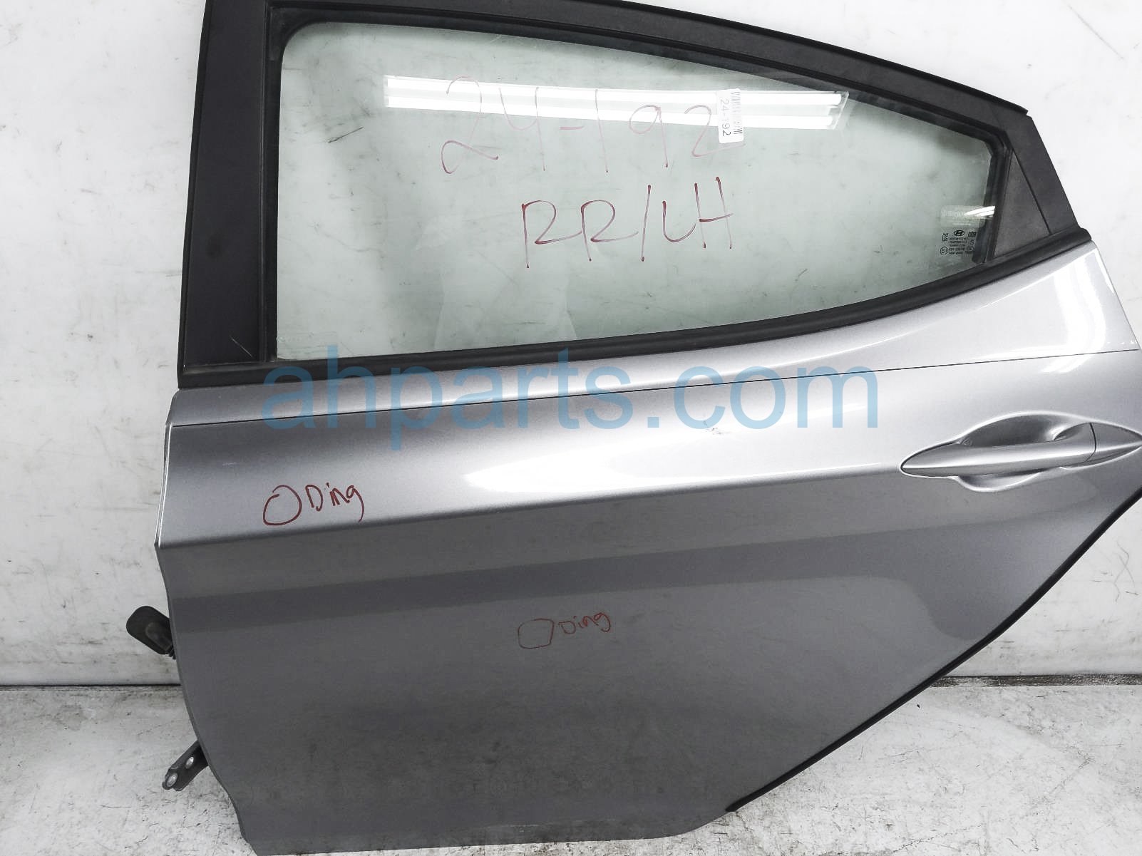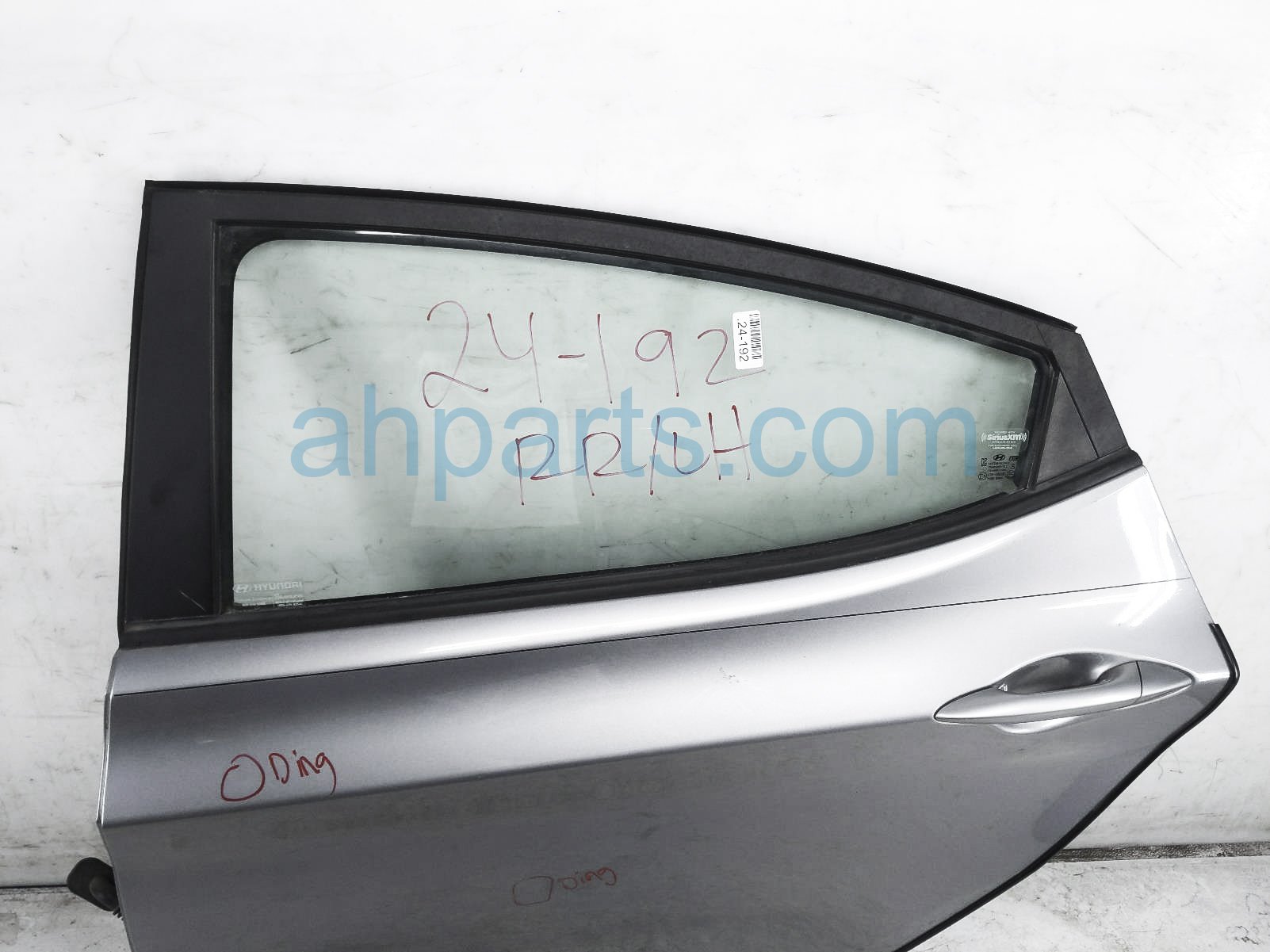 2015 Hyundai Elantra rear driver door - silver -no inside trim is a used item with a 1 year warranty. This OEM replacement rear driver door - silver -no inside trim is genuine and has part numbers 77003-3X011, 770033X011, 83411-3X020, and 834113X020. This Hyundai part sells for $200. This item has the following note: 'This item has 2 dings - grade b this item has 2 dings - grade b.'