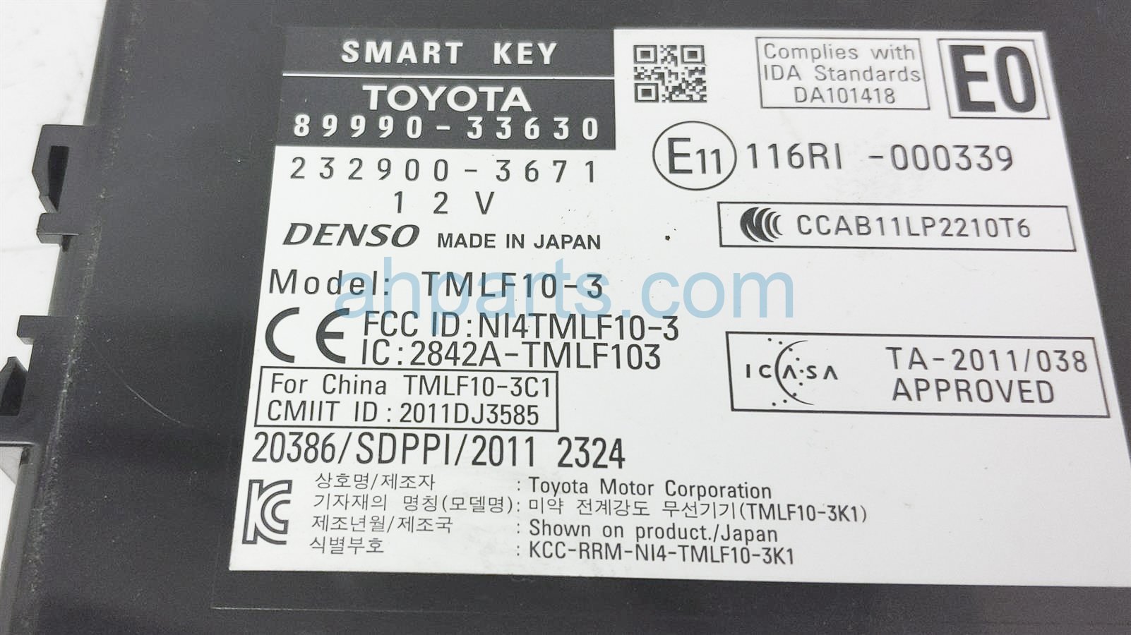 2015 Lexus ES300H smart key control module is a used item with a 1 year warranty. This OEM replacement smart key control module is genuine and has part numbers 89990-33630, and 8999033630. This Lexus part sells for $99.