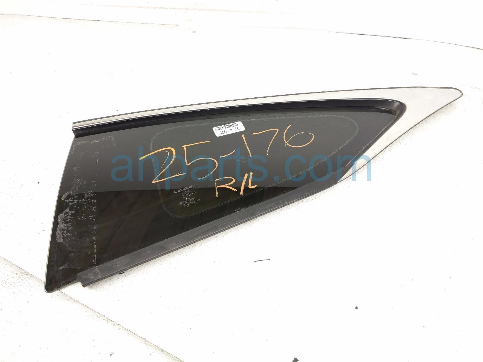 2015 Lexus RC350 driver quarter window glass is a used item with a 1 year warranty. This OEM replacement driver quarter window glass is genuine and has part numbers 62720-24180, and 6272024180. This Lexus part sells for $90.