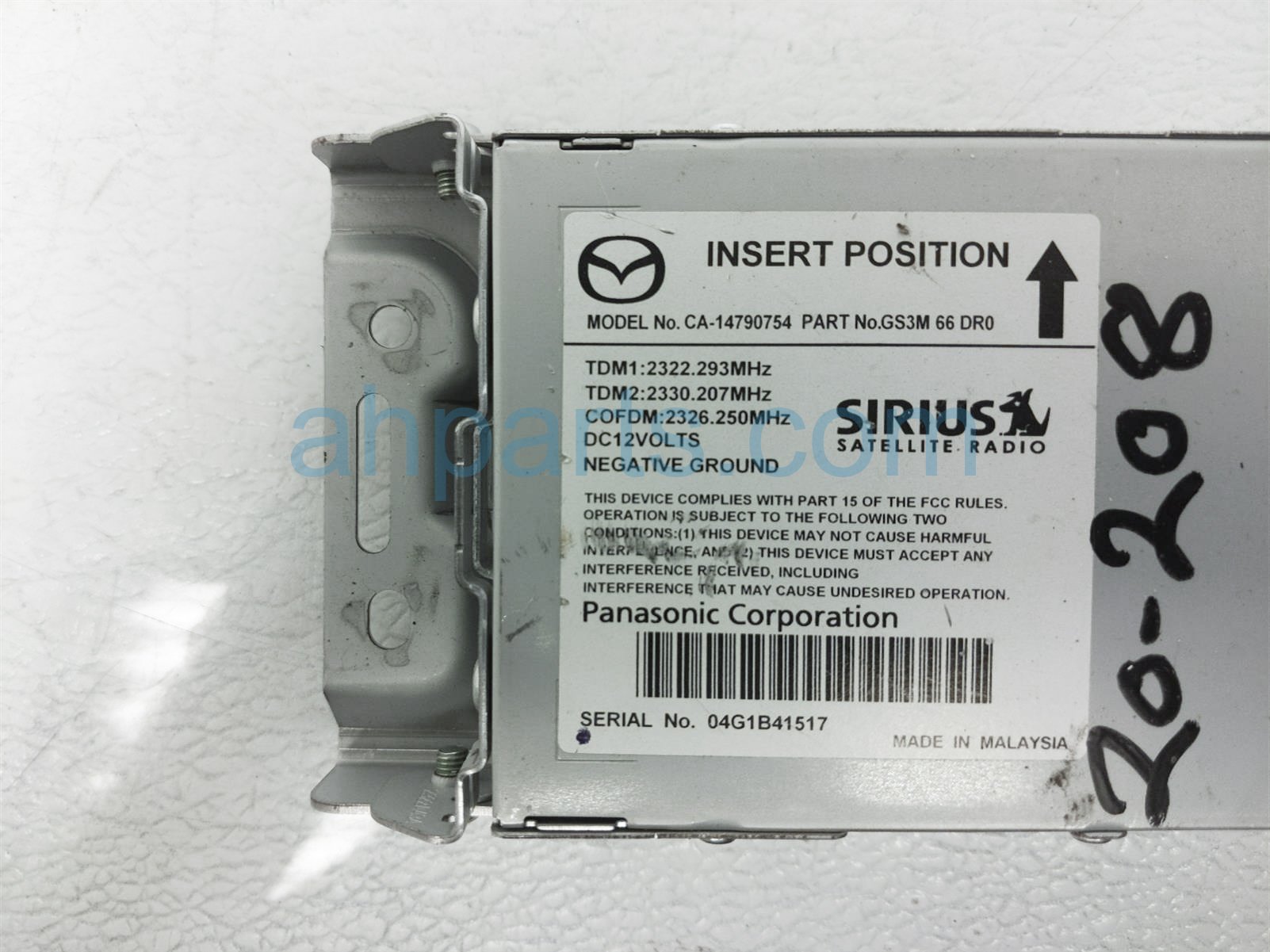 2015 Mazda 6 satellite radio receiver is a used item with a 1 year warranty. This OEM replacement satellite radio receiver is genuine and has part numbers GS3M-66-DR0, and GS3M66DR0. This Mazda part sells for $25.