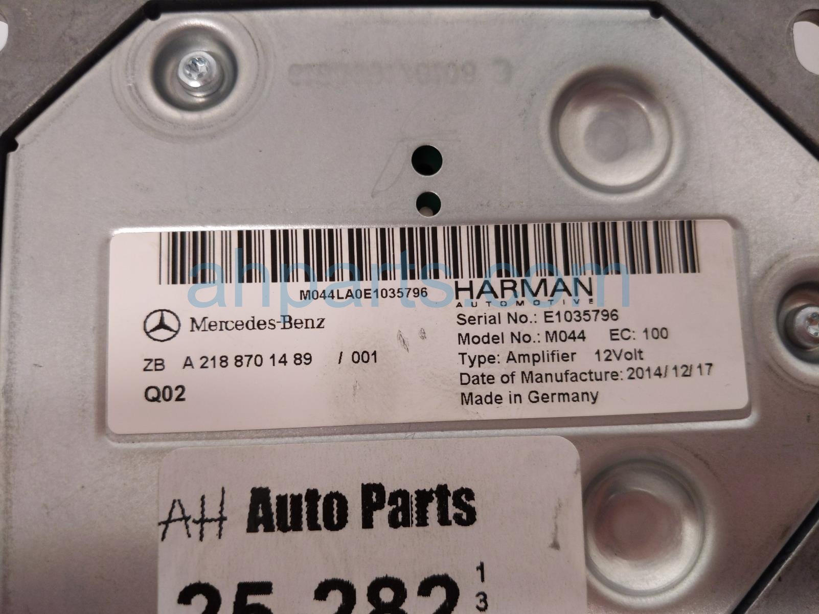 2015 Mercedes GLK350 audio amplifier rear right is a used item with a 1 year warranty. This OEM replacement audio amplifier rear right is genuine and has part numbers 218-870-14-89, and 2188701489. This Mercedes part is for sale (please call for pricing).