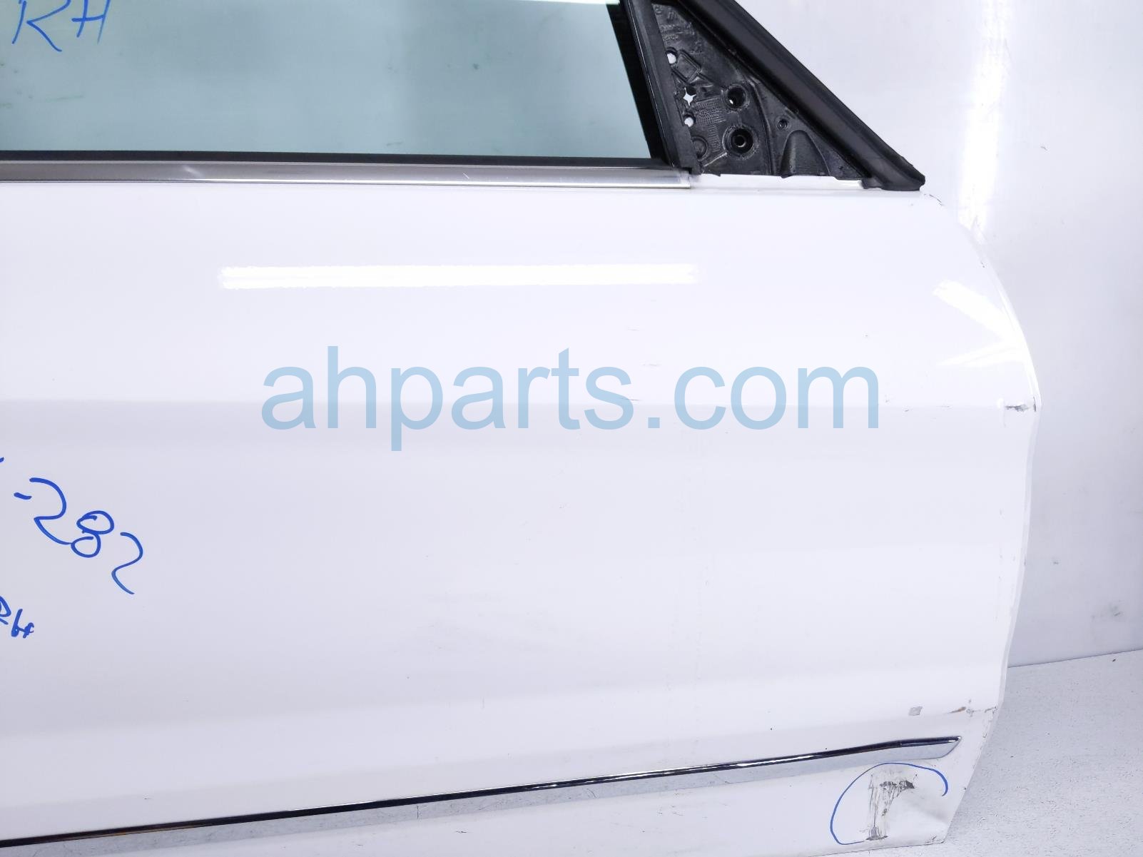 2015 Mercedes GLK350 front passenger door - white - no mirror/trim is a used item with a 1 year warranty. This OEM replacement front passenger door - white - no mirror/trim is genuine and has part numbers 204-720-54-00, and 2047205400. This Mercedes part is for sale (please call for pricing). This item has the following note: 'This item has a big dents and some scratches and scuffs.'
