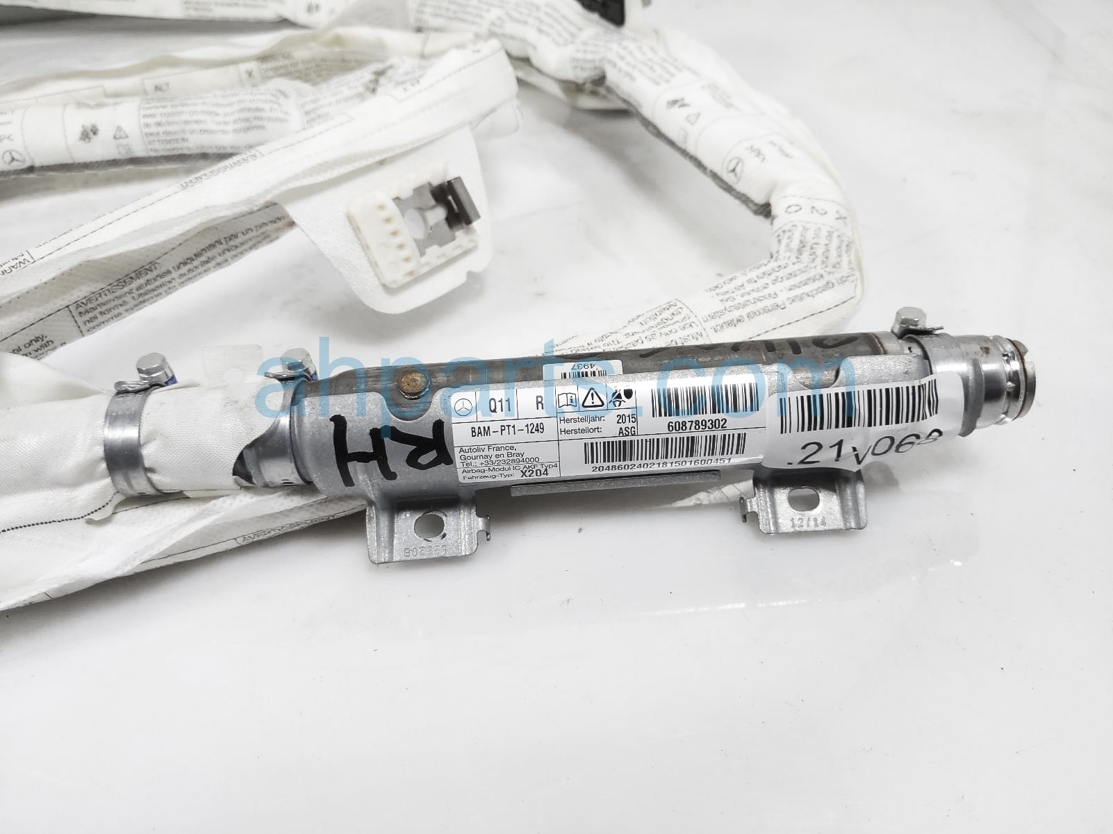2015 Mercedes GLK350 passenger passenger roof curtain airbag is a used item with a 1 year warranty. This OEM replacement passenger passenger roof curtain airbag is genuine and has part numbers 204860240264, and 2048602402. This Mercedes part sells for $189.