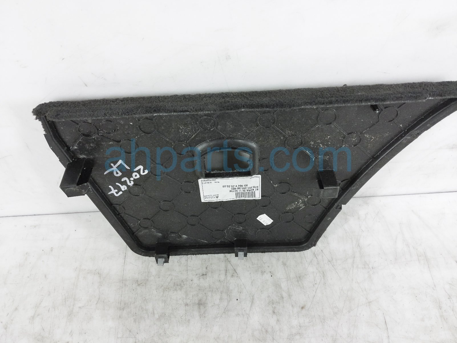 2015 Porsche Panamera driver cargo trunk side cover - black is a used item with a 1 year warranty. This OEM replacement driver cargo trunk side cover - black is genuine and has part numbers 970-551-055-00-6B0, and 970551055006B0. This Porsche part sells for $30.