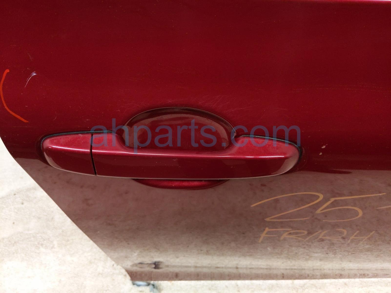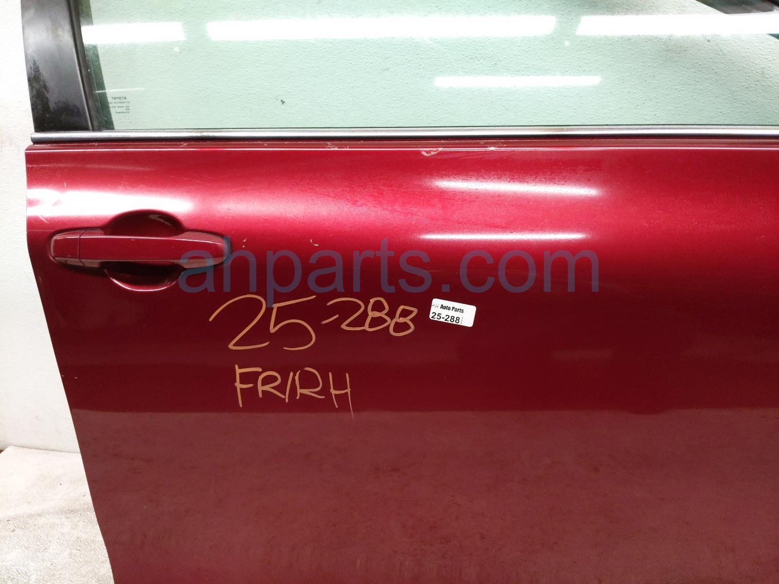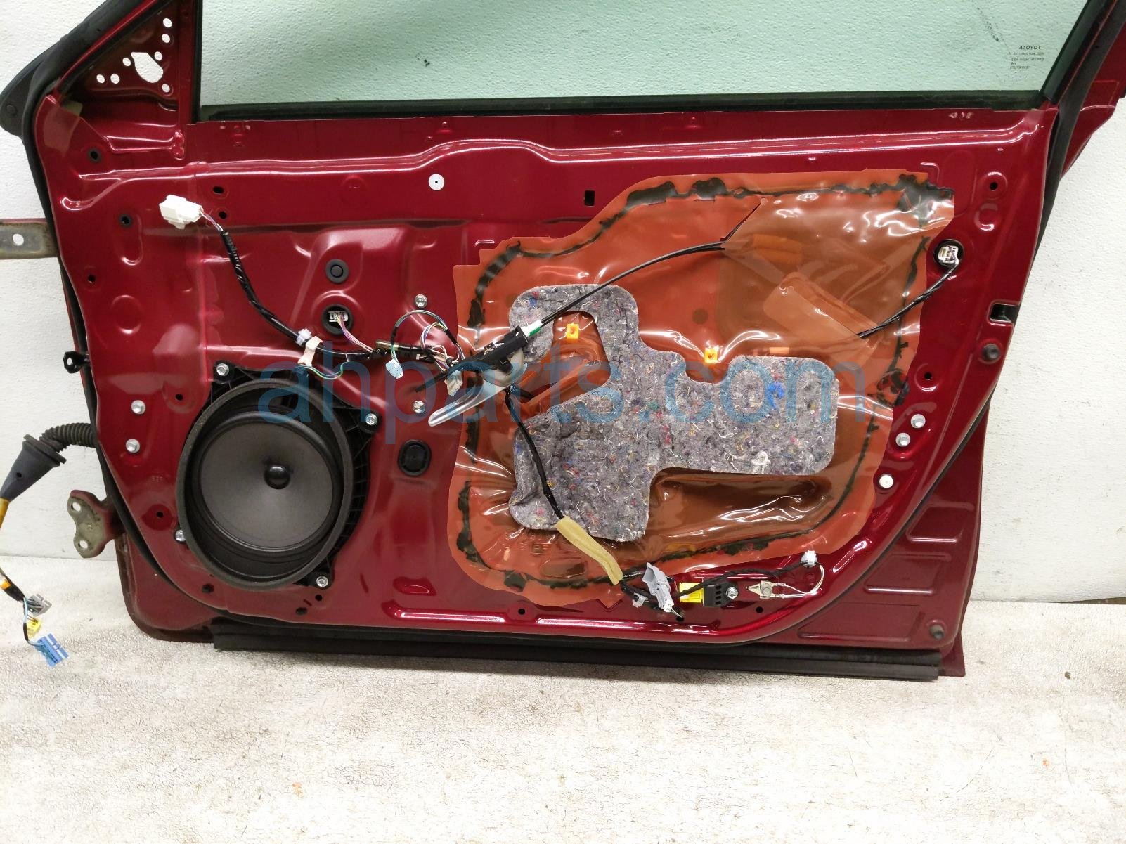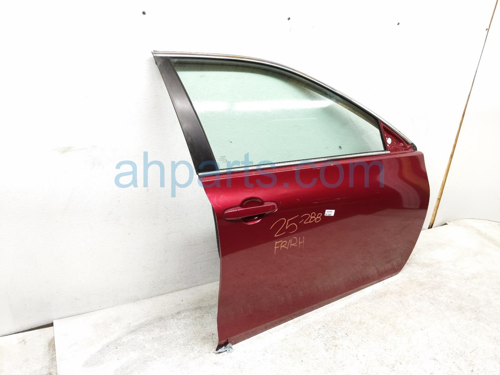 2015 Toyota Camry front passenger door - red - no mirror/trim is a used item with a 1 year warranty. This OEM replacement front passenger door - red - no mirror/trim is genuine and has part numbers 67001-06221, and 6700106221. This Toyota part is for sale (please call for pricing). This item has the following note: 'This item has a few scratches.'