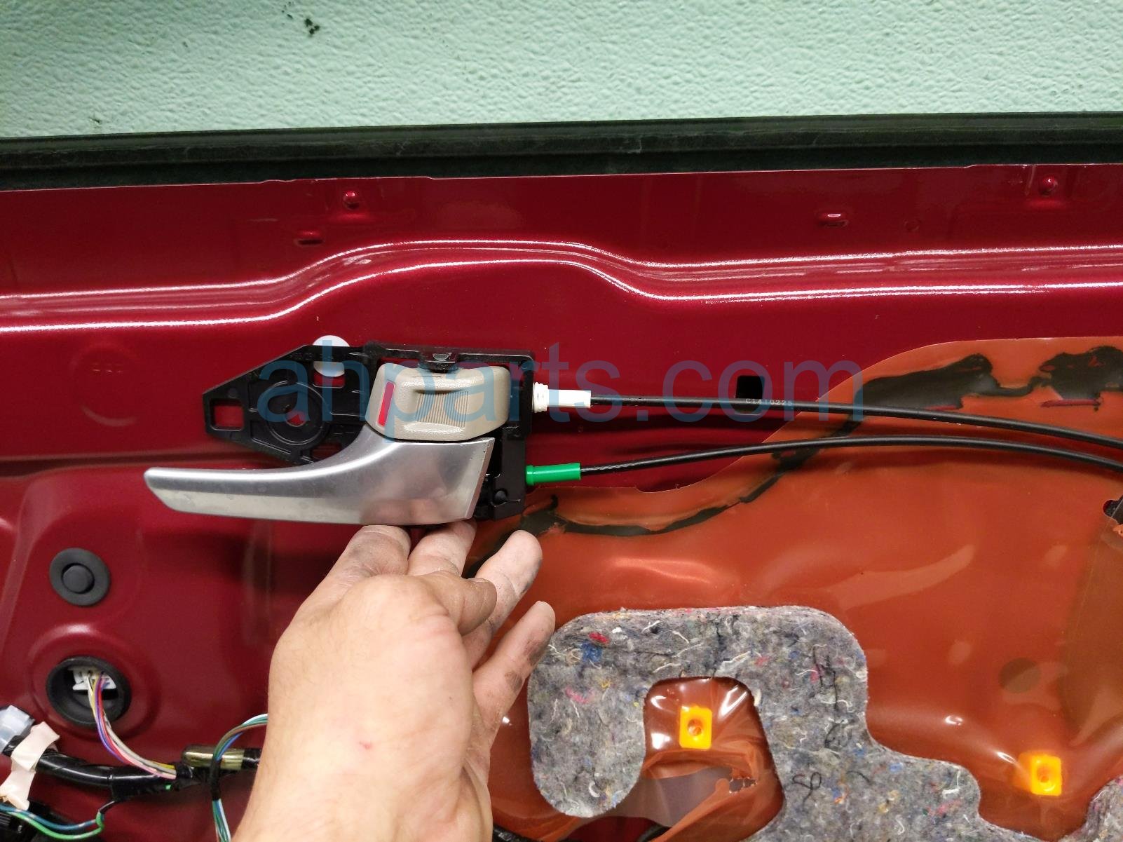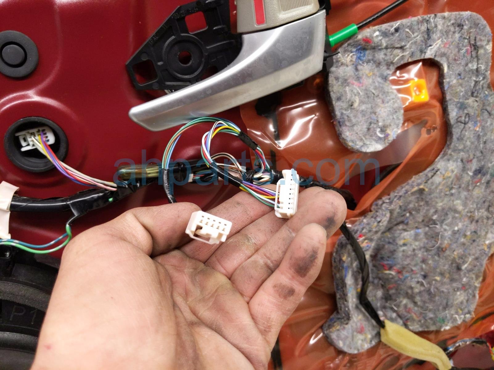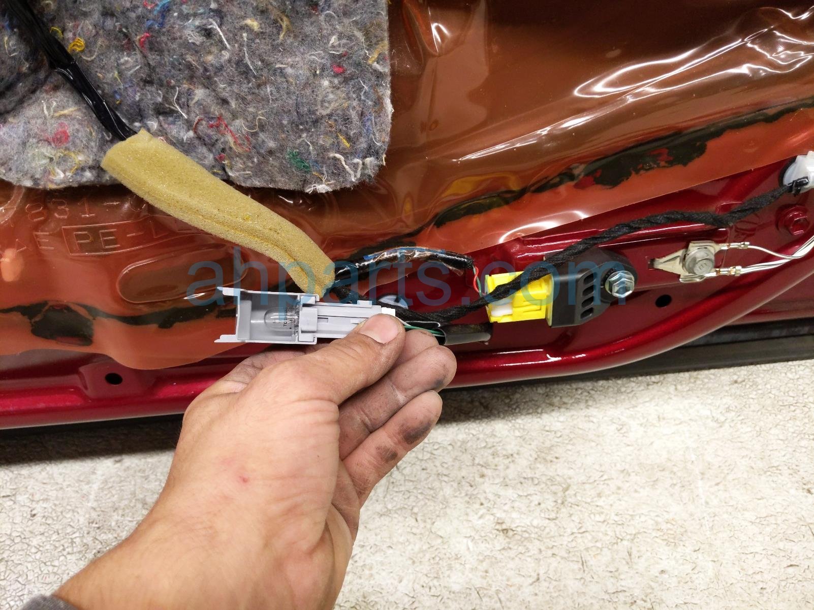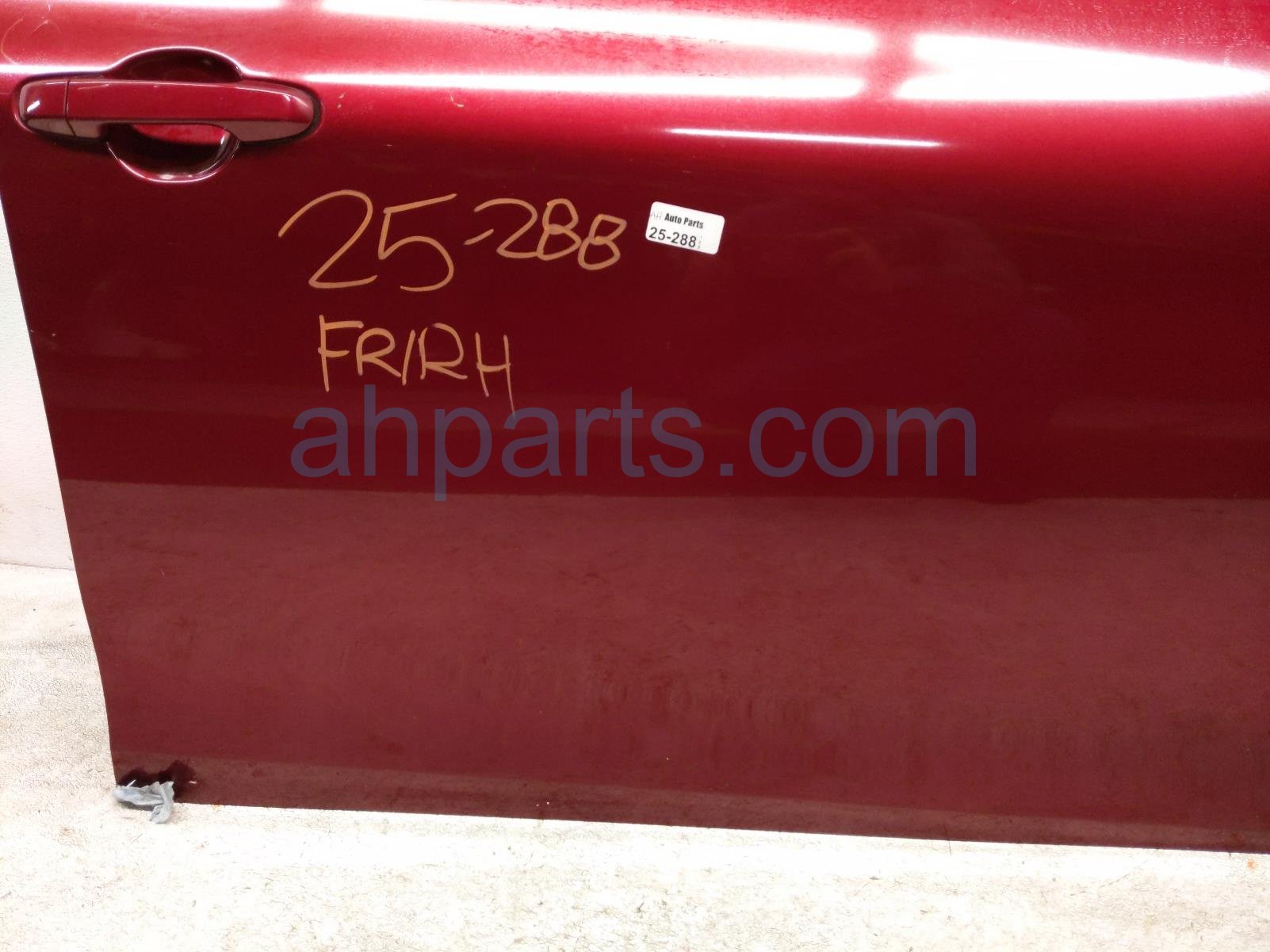 2015 Toyota Camry front passenger door - red - no mirror/trim is a used item with a 1 year warranty. This OEM replacement front passenger door - red - no mirror/trim is genuine and has part numbers 67001-06221, and 6700106221. This Toyota part is for sale (please call for pricing). This item has the following note: 'This item has a few scratches.'