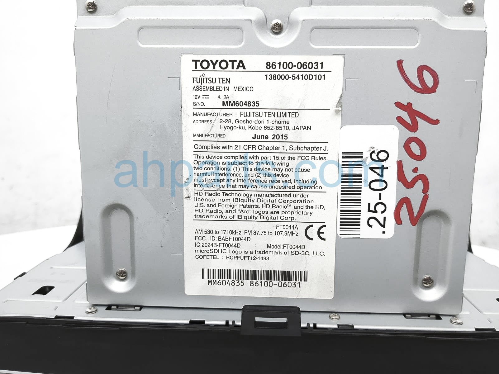 2015 Toyota Camry radio receiver & display screen is a used item with a 1 year warranty. This OEM replacement radio receiver & display screen is genuine and has part numbers 86100-06031, and 8610006031. This Toyota part sells for $499.