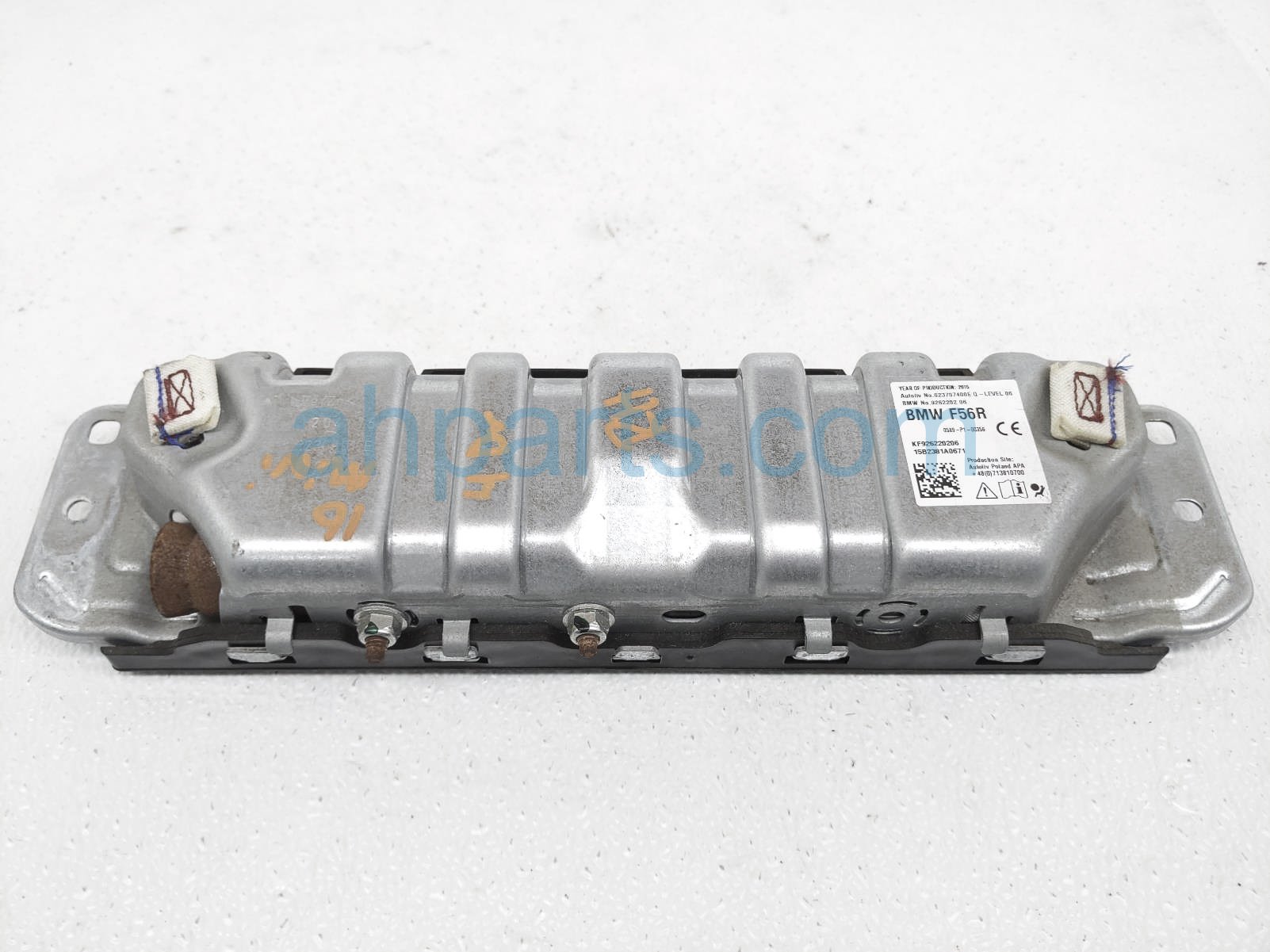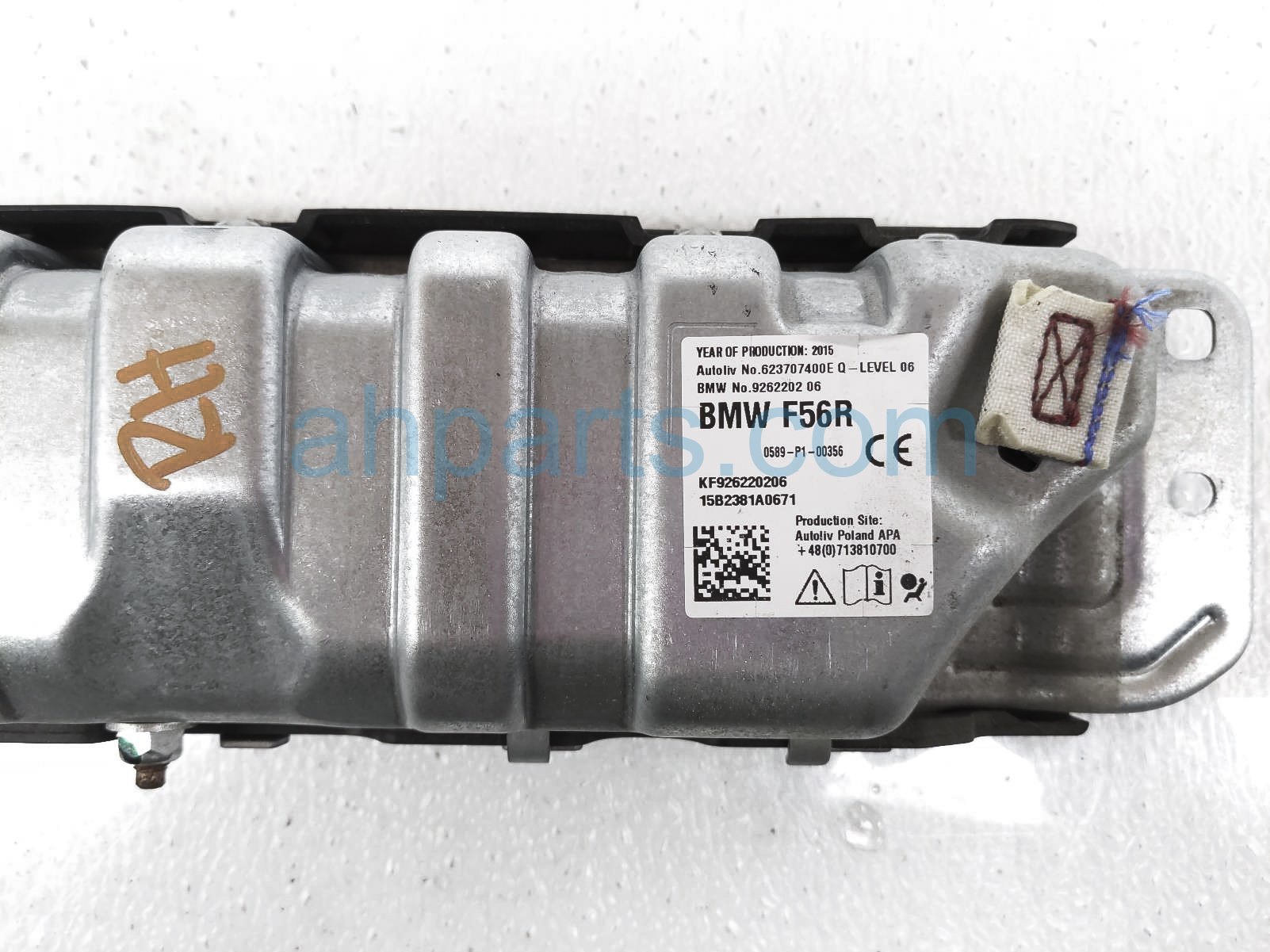 2016 BMW Mini Cooper airbag passenger passenger knee air bag is a used item with a 1 year warranty. This OEM replacement airbag passenger passenger knee air bag is genuine and has part numbers 72-12-9-262-202, and 72129262202. This BMW part sells for $50.