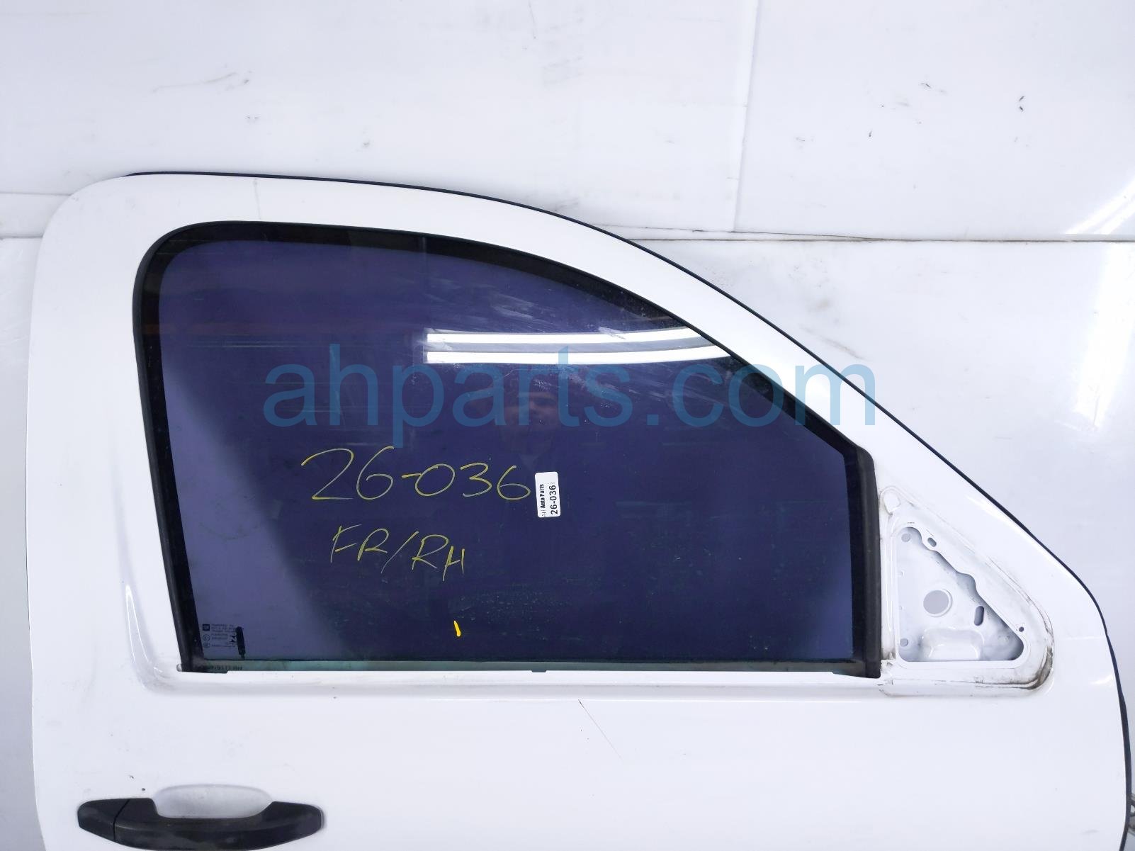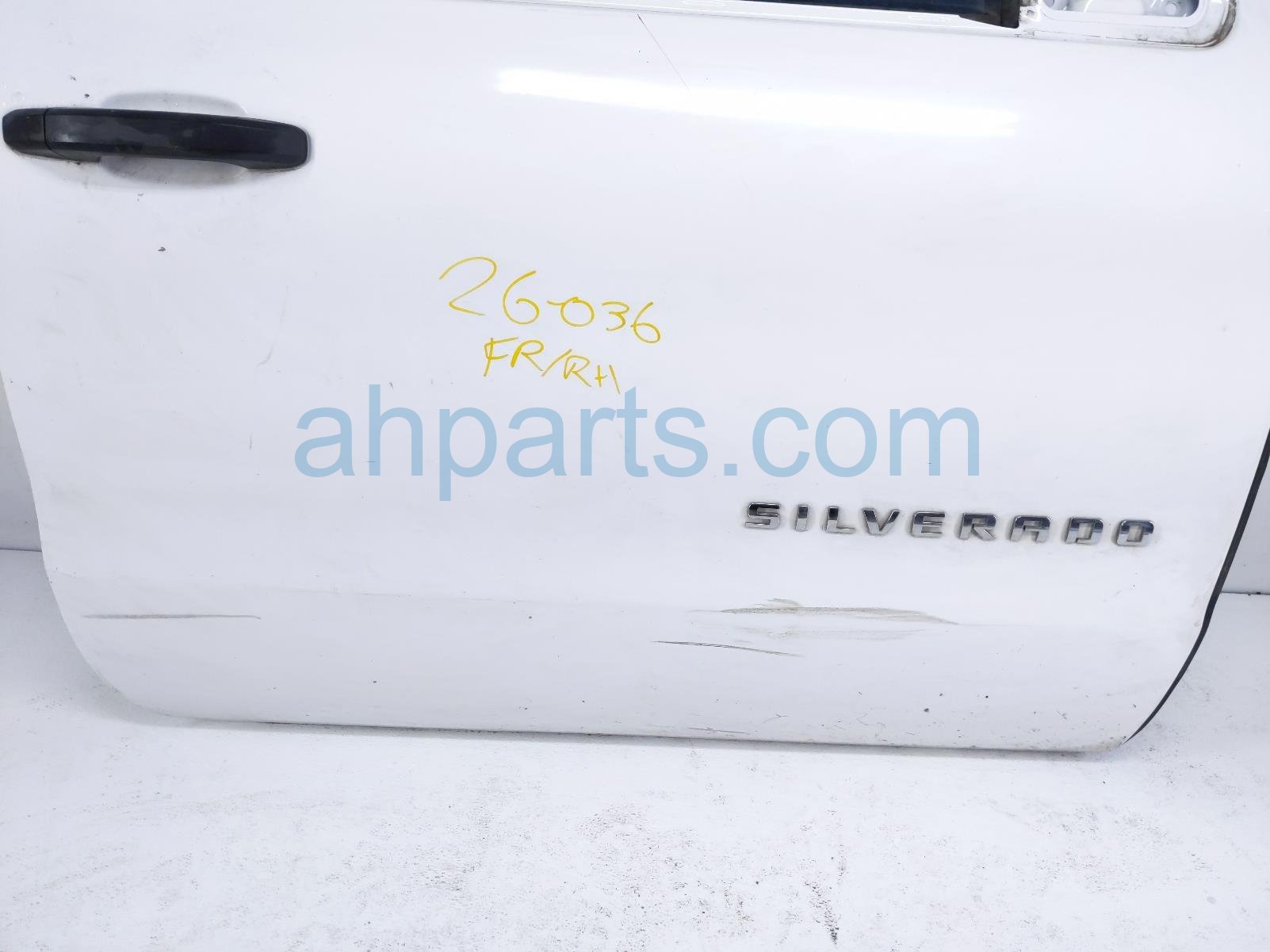 2016 Chevy Silverado 1500 front passenger door - white - no mirror/trim is a used item with a 1 year warranty. This OEM replacement front passenger door - white - no mirror/trim is genuine and has part numbers 84125559, 20979117, 84208312, and 23104635. This Chevy part is for sale (please call for pricing). This item has the following note: 'Scratched/scuffed.'