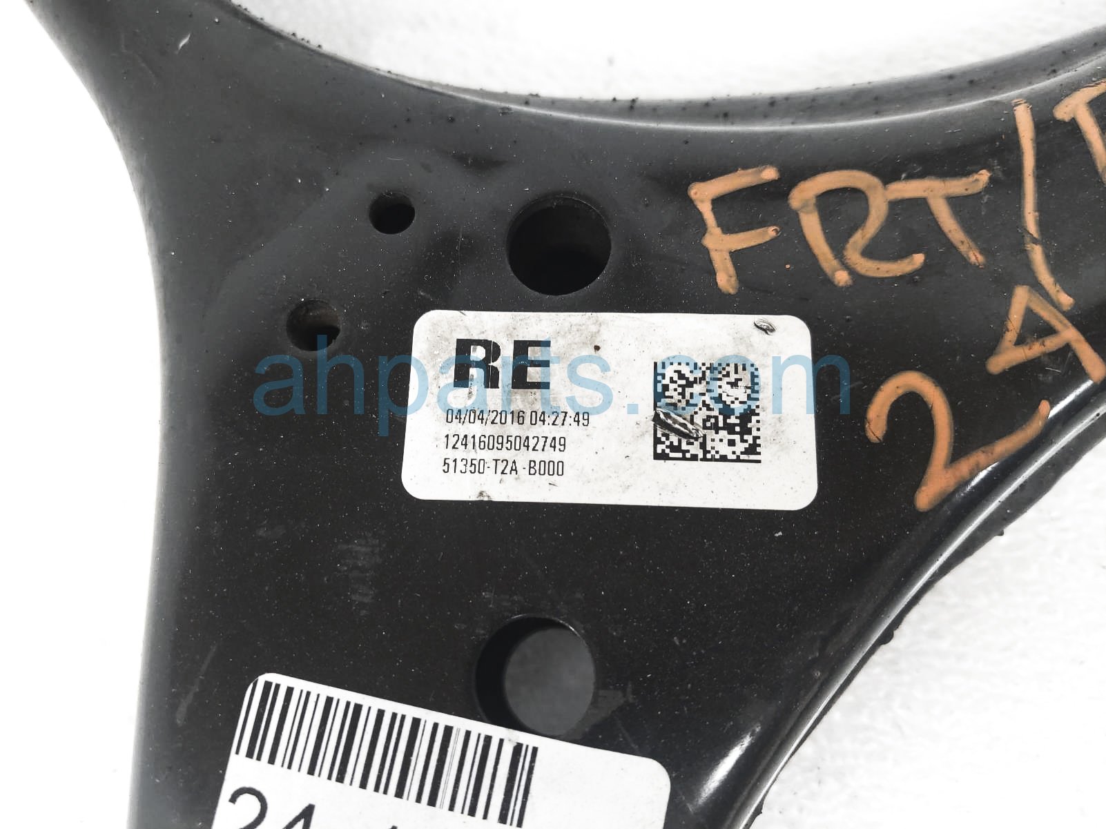 2016 Honda Accord front passenger lower control arm is a used item with a 1 year warranty. This OEM replacement front passenger lower control arm is genuine and has part numbers 51350-T2A-B00, and 51350T2AB00. This Honda part sells for $125.