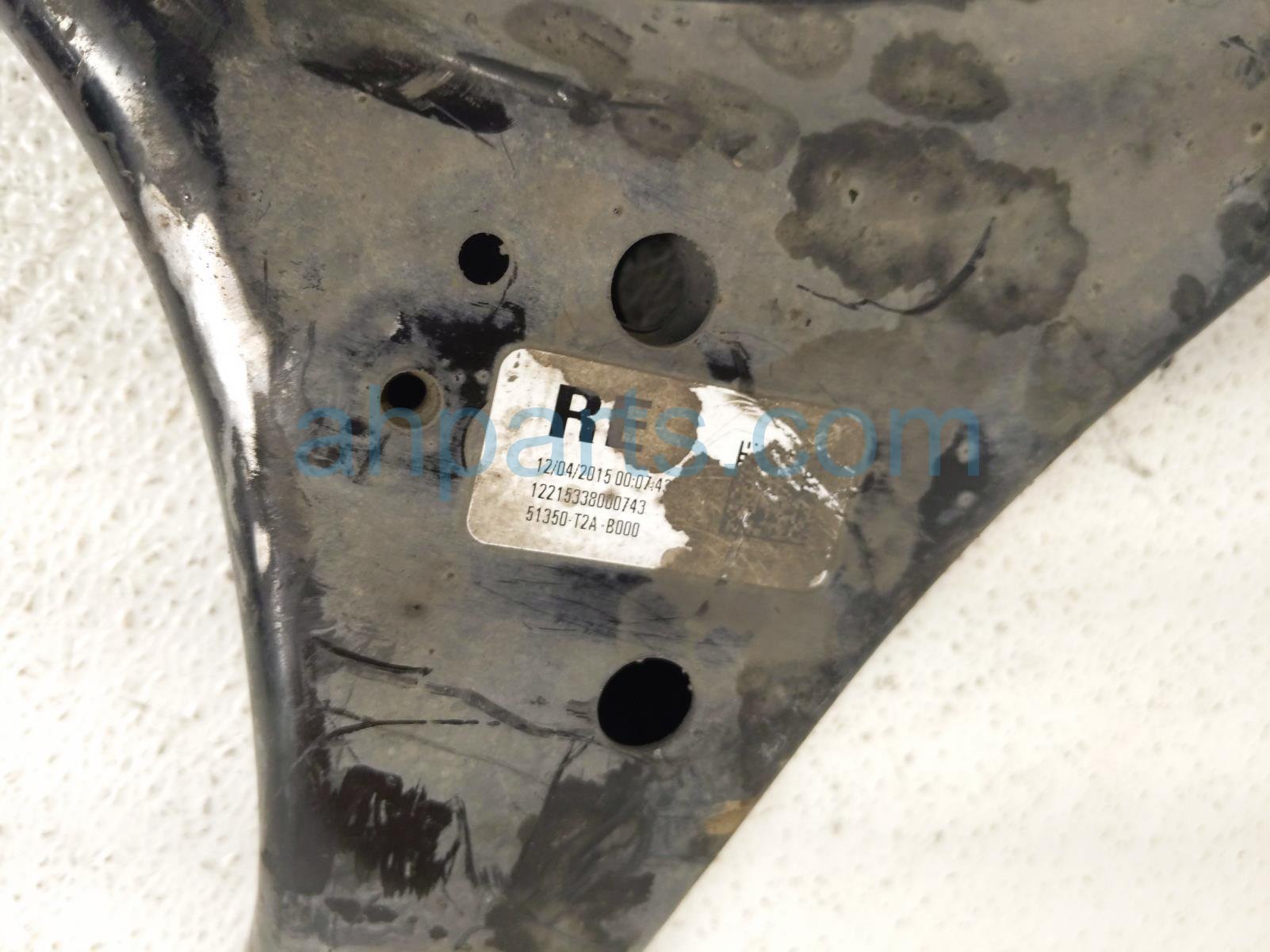 2016 Honda Accord front passenger lower control arm is a used item with a 1 year warranty. This OEM replacement front passenger lower control arm is genuine and has part numbers 51350-T2A-B00, and 51350T2AB00. This Honda part is for sale (please call for pricing).