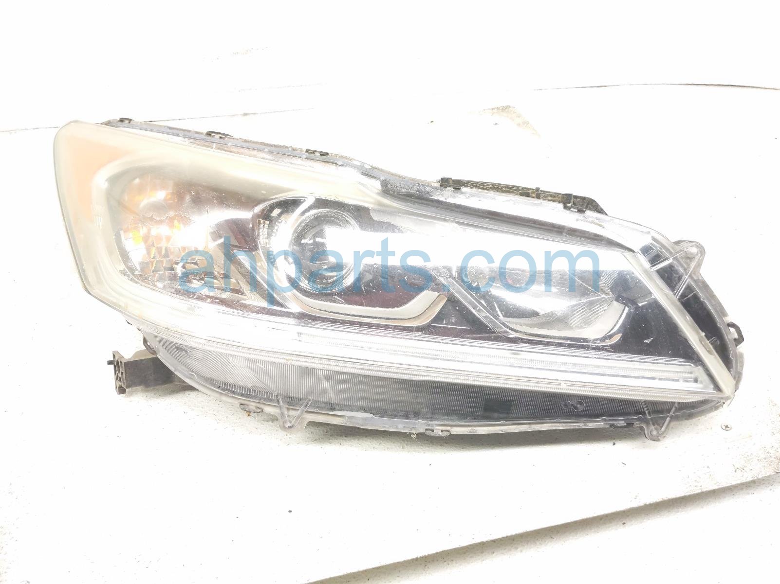 2016 Honda Accord headlight passenger headlamp / light * is a used item with a 1 year warranty. This OEM replacement headlight passenger headlamp / light * is genuine and has part numbers 33100-T2A-A61, and 33100T2AA61. This Honda part sells for $99. This item has the following note: 'Hazy & pitting on lens - grade b.'